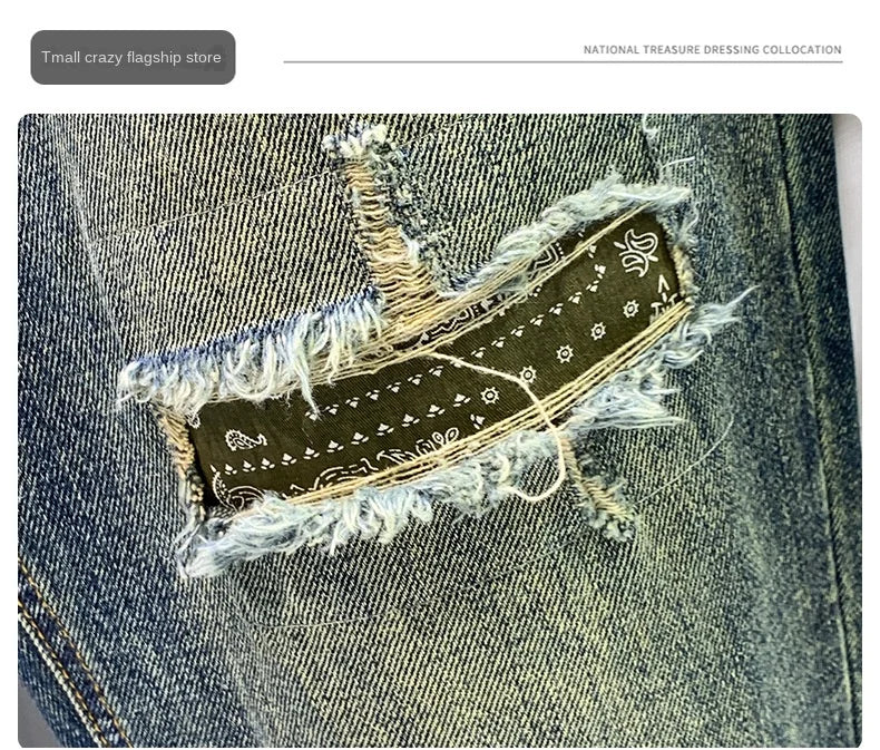 High Street Trendy Marke Retro Distressed Loose Harlan Jeans Herren Frühling und Herbst Neue personalisierte trendige Patch lange Hosen Me