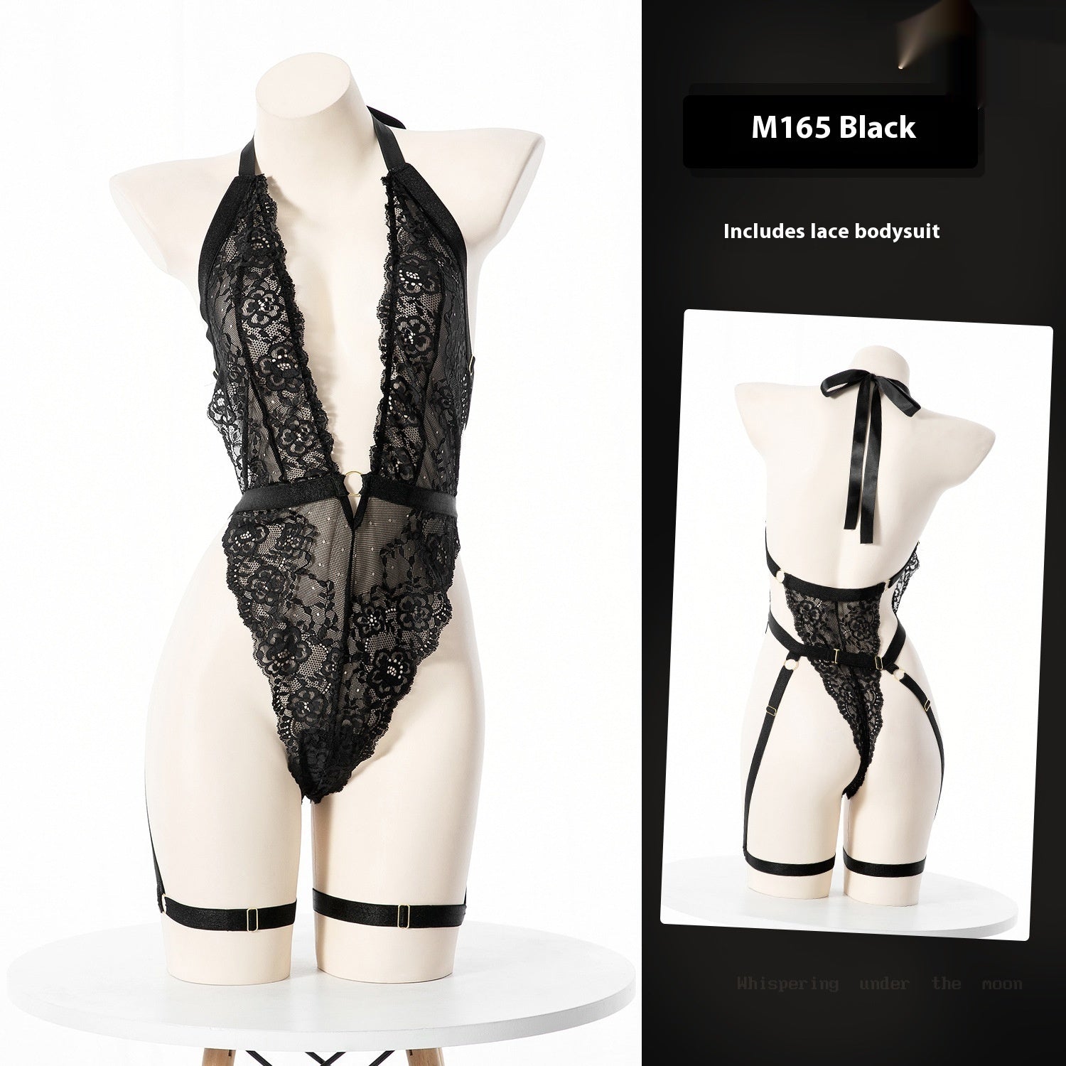 Sexy Pyjama aus Spitze mit Neckholder und Schnürung für Damen