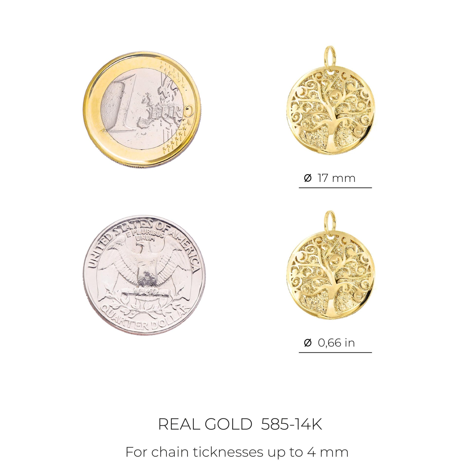 Lucchetta - Baum des Lebens Anhänger in 14K Gelbgold mit Diamant-Effekt Medaille, Durchmesser 17mm, Goldanhänger Damen Mädchen 585 Echtgold für Kette (bis zu 4 mm) - hergestellt in Italien