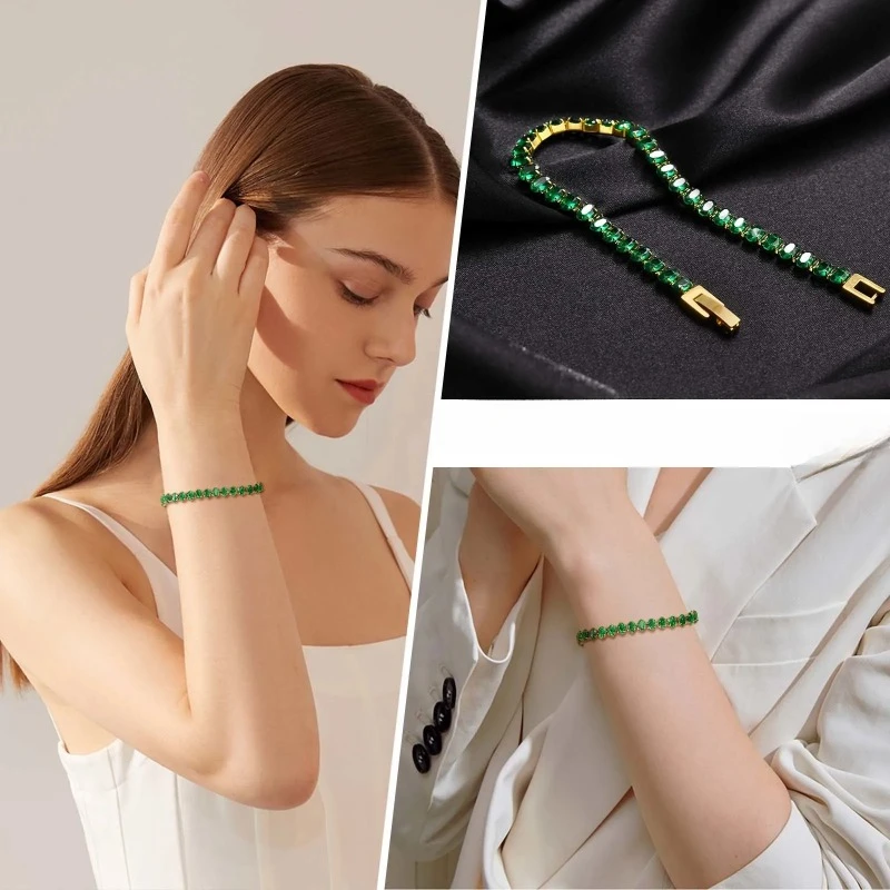 Luxury Vintage Full Set Synthetic Green Crystal Bracelet Men Women Elegant Gorgeous Jewellery Holiday Party Hundreds with Pieces