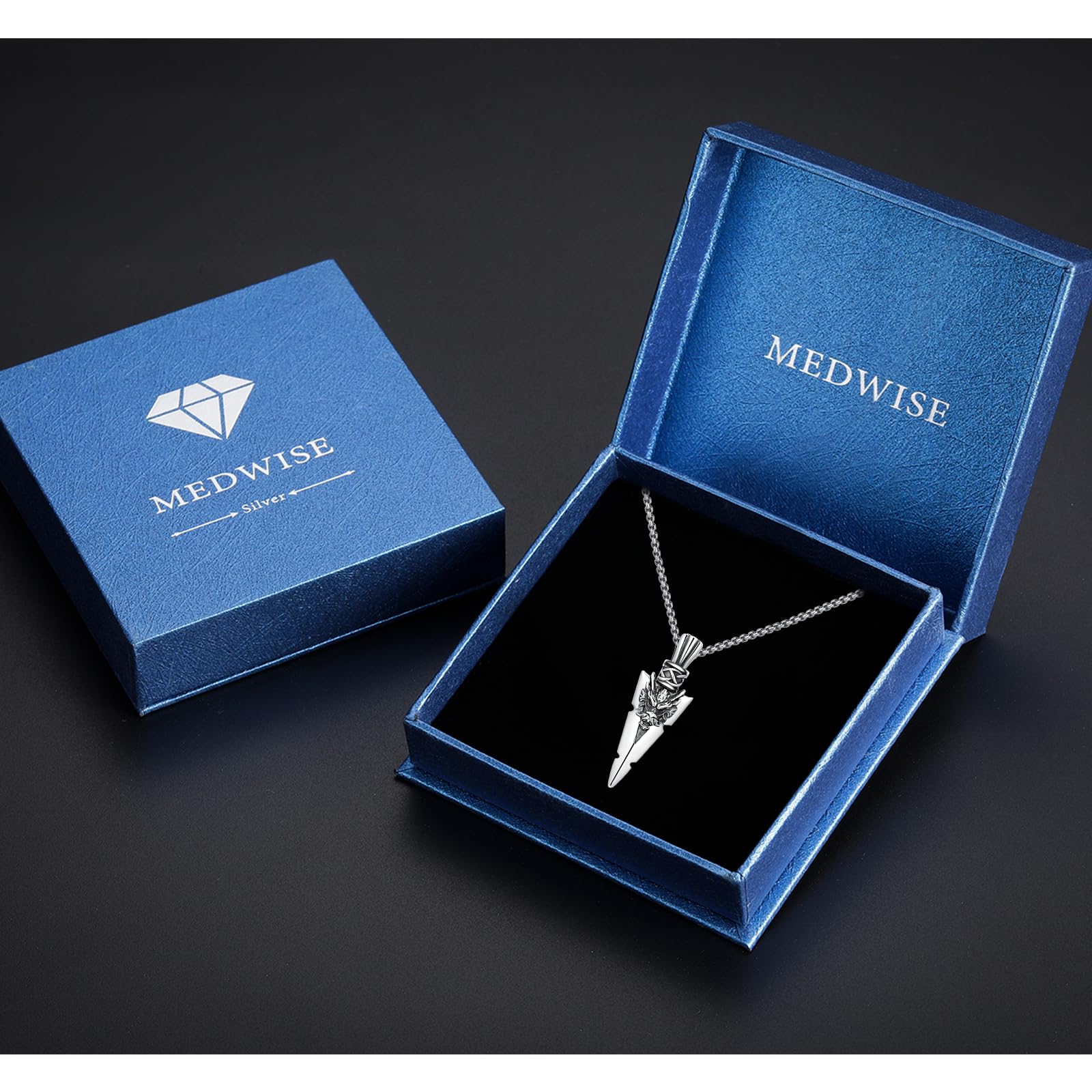 MEDWISE Drachen Halskette 925 Sterling Silber Kette Drachen Herren Pfeilspitze Kette Keltisches Anhänger Amulett Schmuck für Herren Männer Jungen Damen Geschenke 20+2'' Edelstahlkette