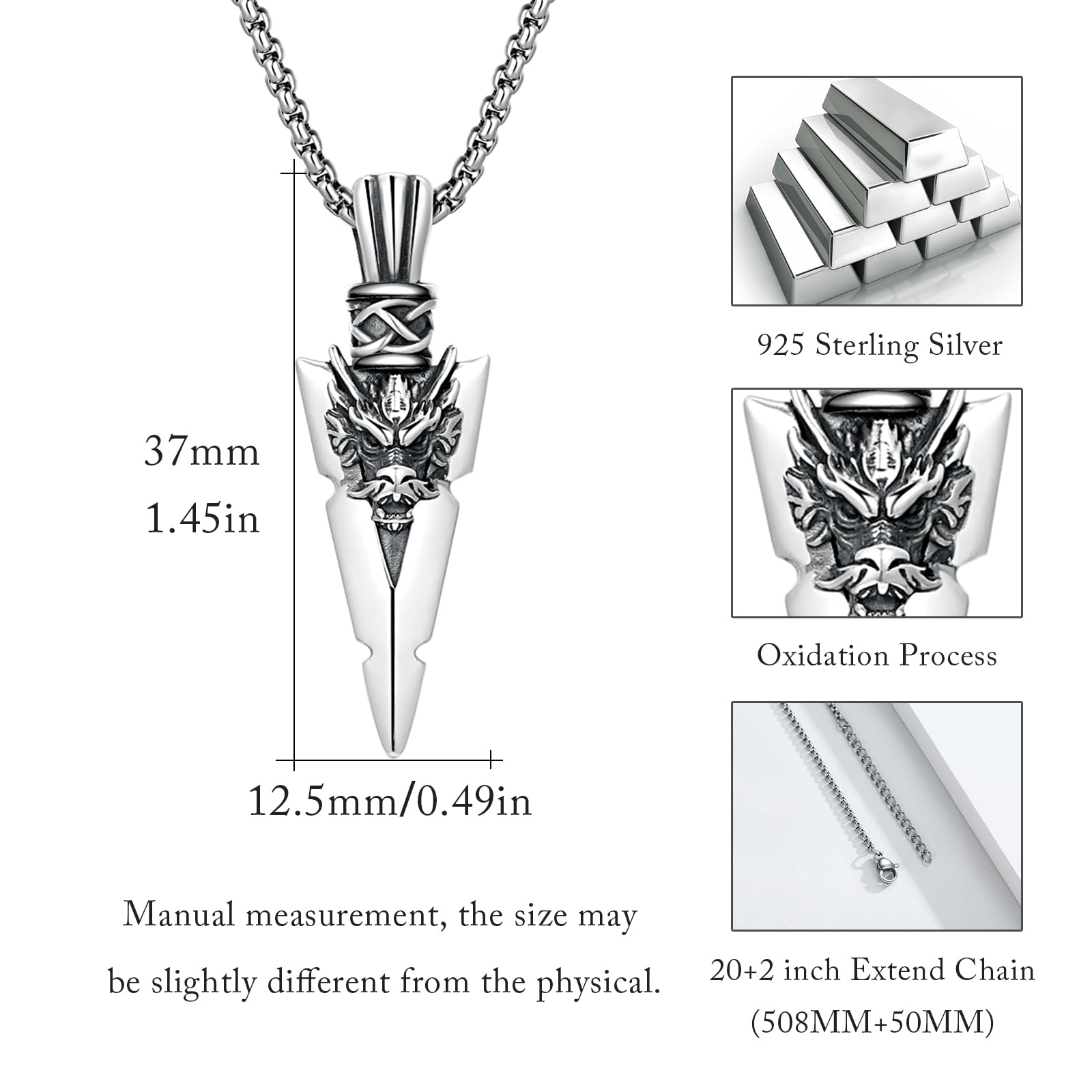 - 【Material aus 925er-Sterlingsilber】- Die Pfeil-Drachen Halskette ist aus 925er-Sterlingsilber. Die Produkte werden einem exquisiten Galvanisierungsprozess unterzogen. Die komplizierten Details der Drachenschuppen und -pfeile verleihen dem Gesamtdesign Struktur. Die Halskette verfügt über eine Tiefenoxidationstechnologie, die exquisit und langlebig ist und eine hervorragende Verarbeitung aufweist. Die glatten Kanten hinterlassen keine Kratzer auf der Haut und der Stil ist leicht zu kontrollieren.