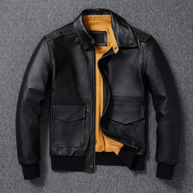 Herren Lederjacke Echtes Rindsleder A2 Pilotenjacke Air Force Fliegerjacken Herren Leder Fliegerjacke Jaqueta Couro Masculina