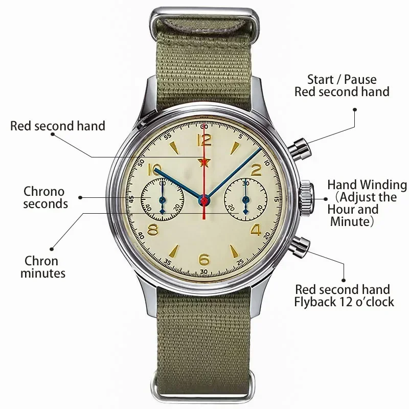 If you receive the watch, the second hand can not reach the 12:00 position, there is a way to adjust-first pull up the crown of the watch, always press and hold the button in the upper right corner, wait for the red second hand to stop at 12:00, and then press the crown, you can reach the 12:00 position by counting seconds.
