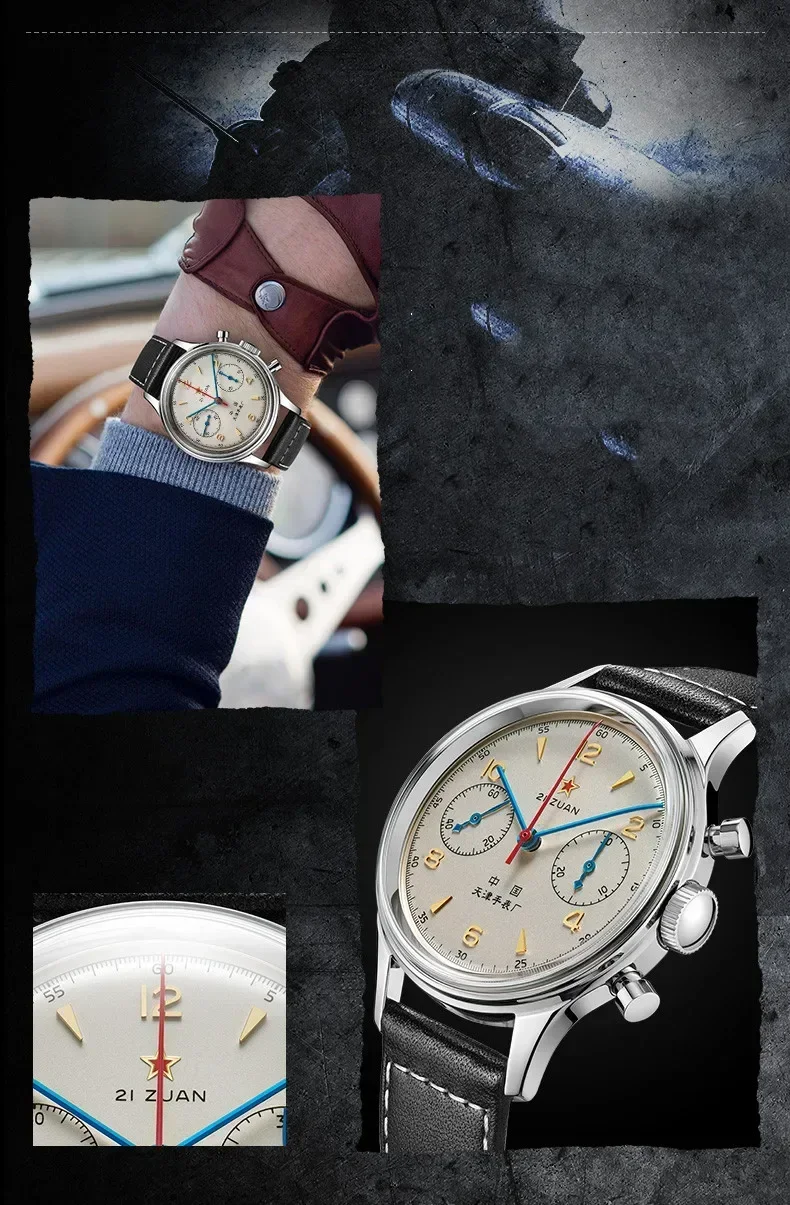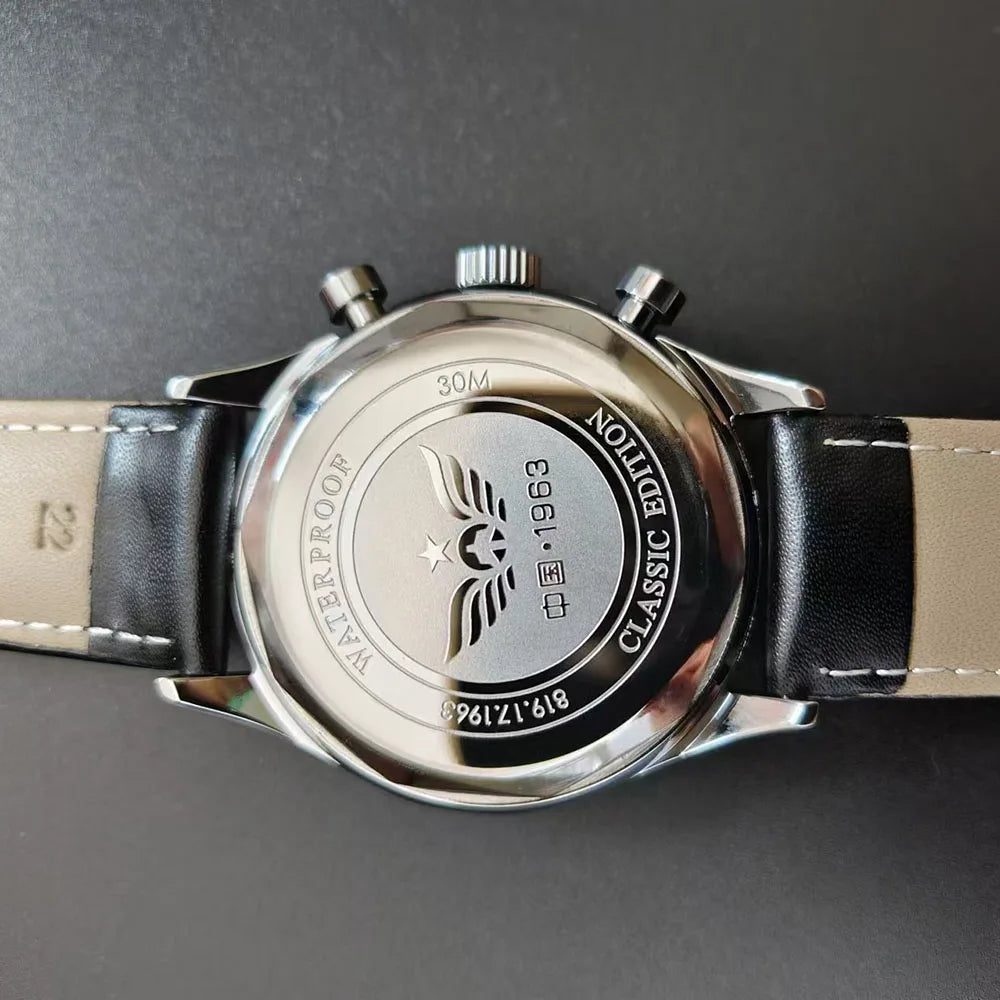 Men's 1963 Pilot Watch 42mm Waterproof Retro Quartz Chronograph Stainless Steel Leather Strap Sports Fashion Wristwatch For Men