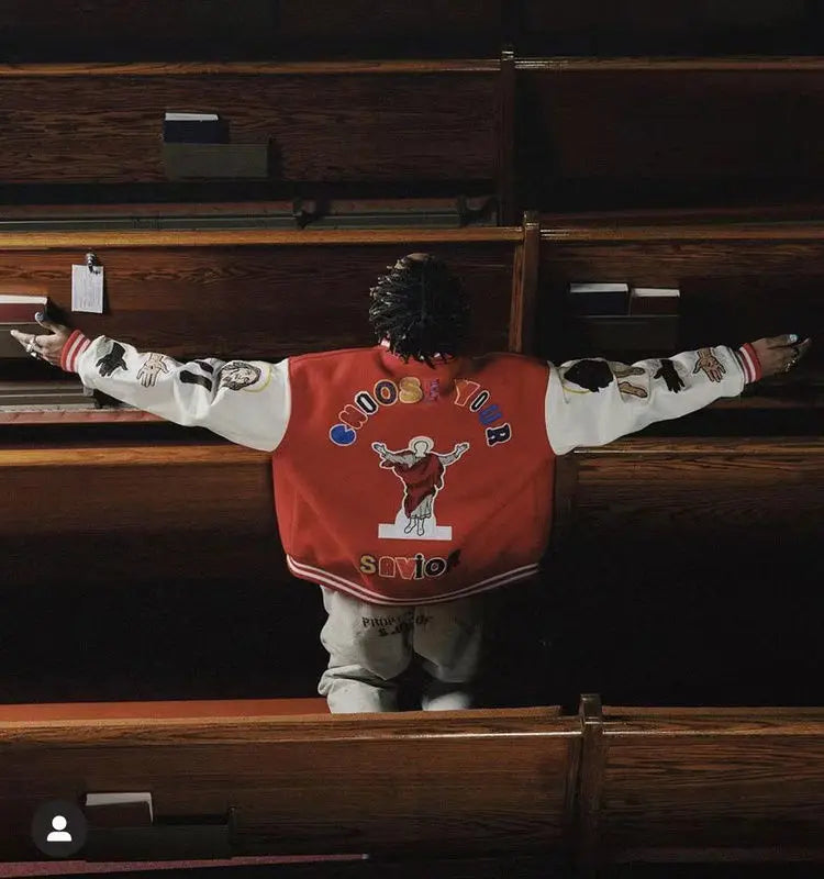 Herren Bomberjacke Hip Hop Brief Beflockung Stickerei Lose Beiläufige Baseball Mantel Unisex High Street Lose Retro Outwear Frühling