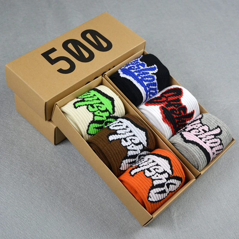 Men's Socks 3 Pair/Box Colorful Letters Street Personality Wild Funny Hip Hop Couple Fashion Basketball Sports 500 Socks