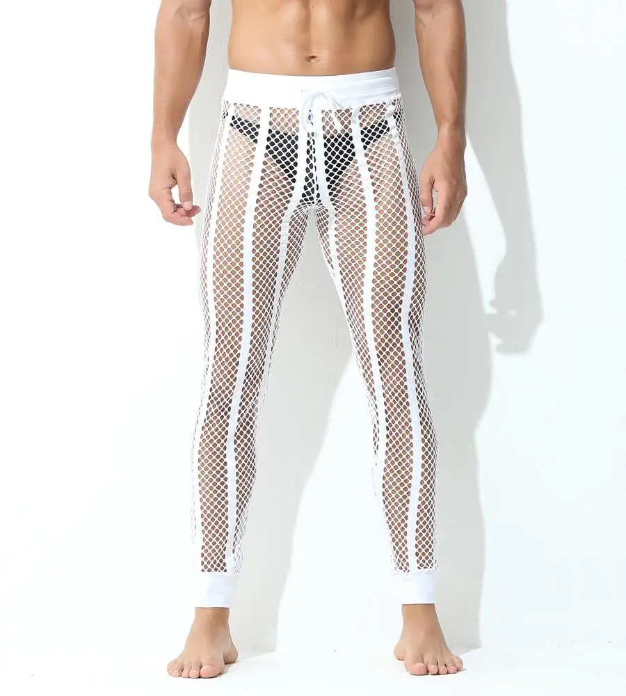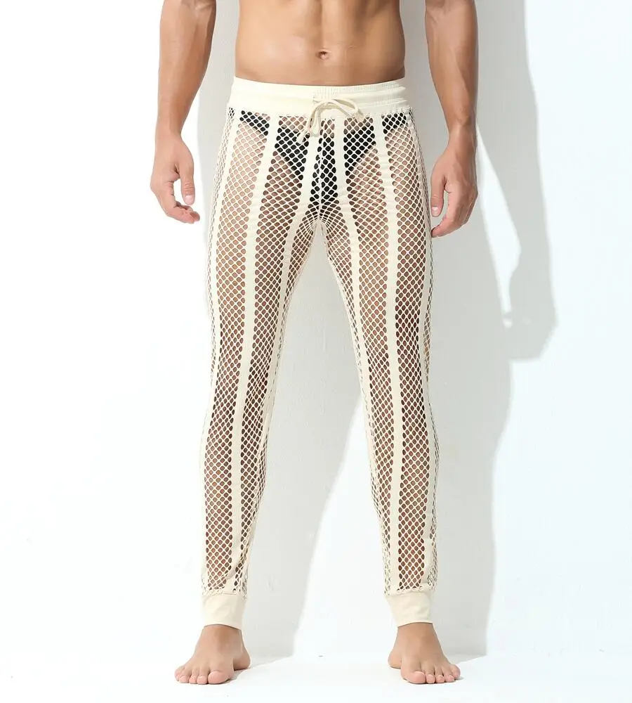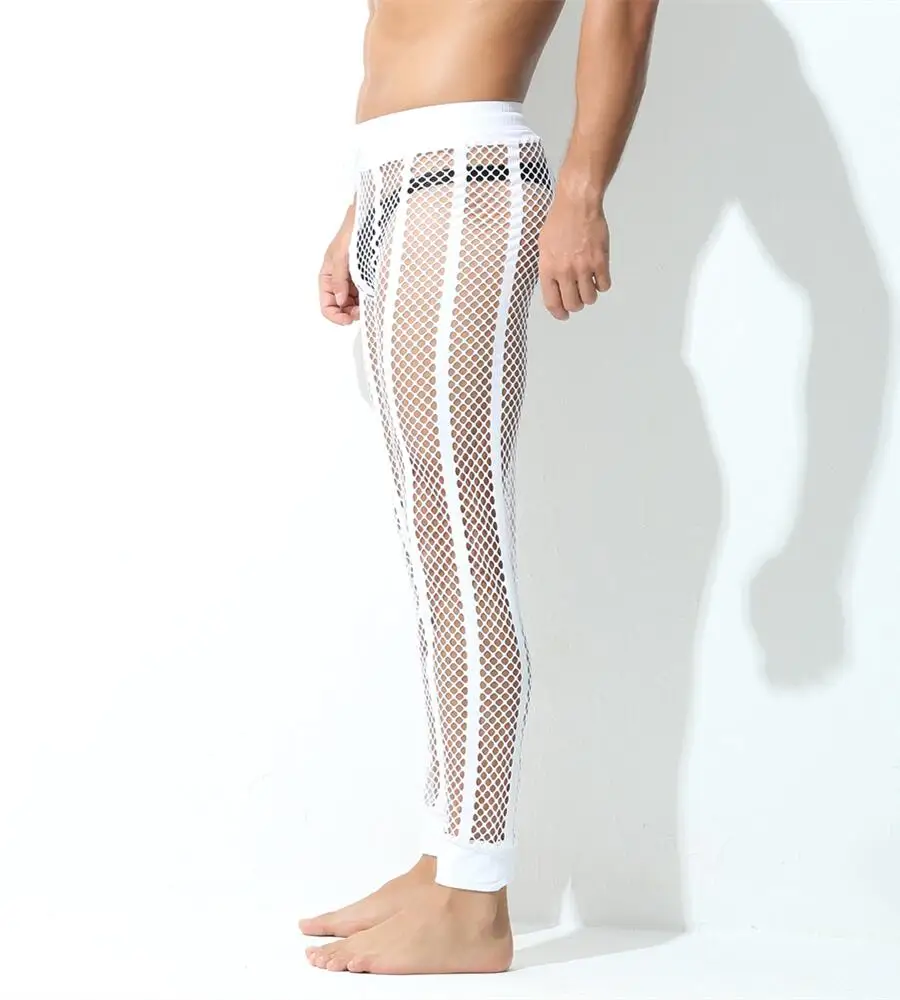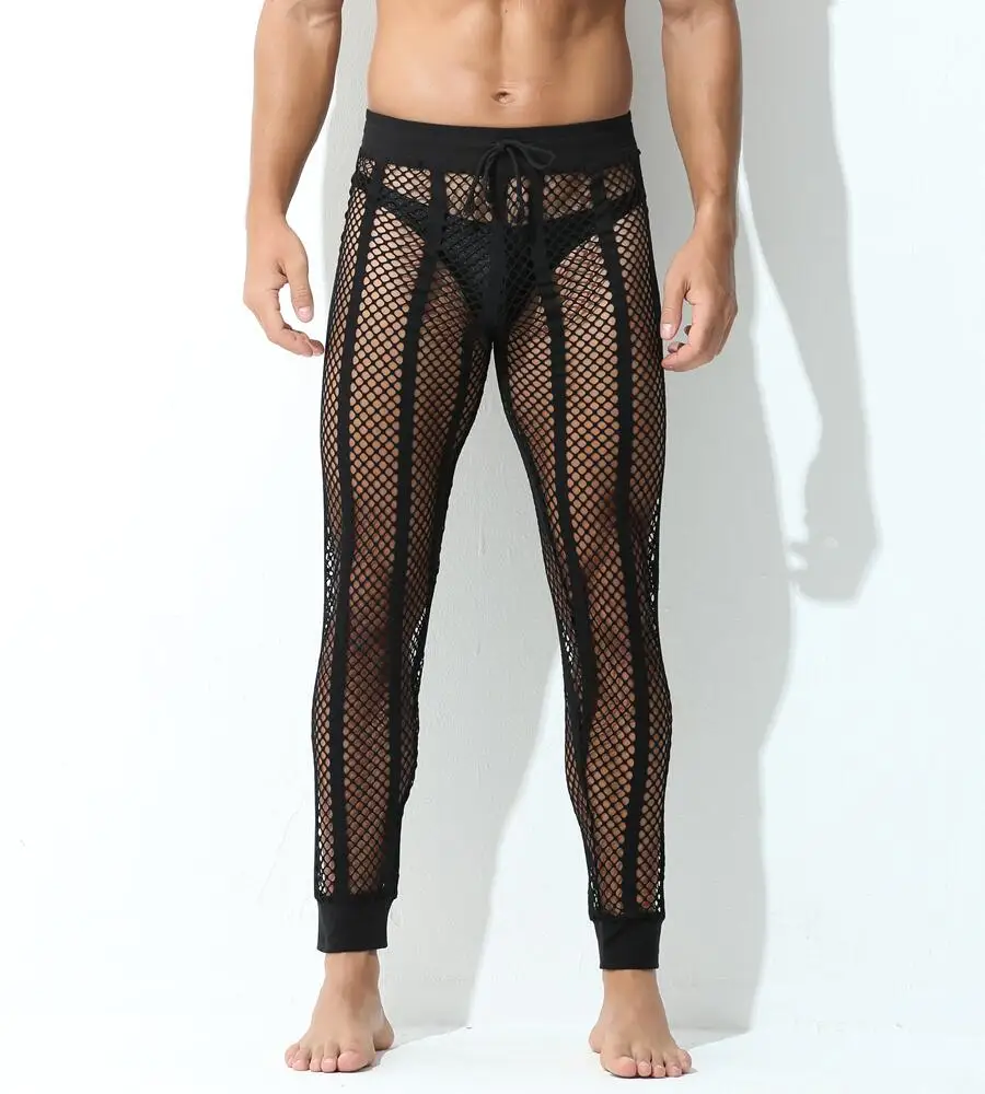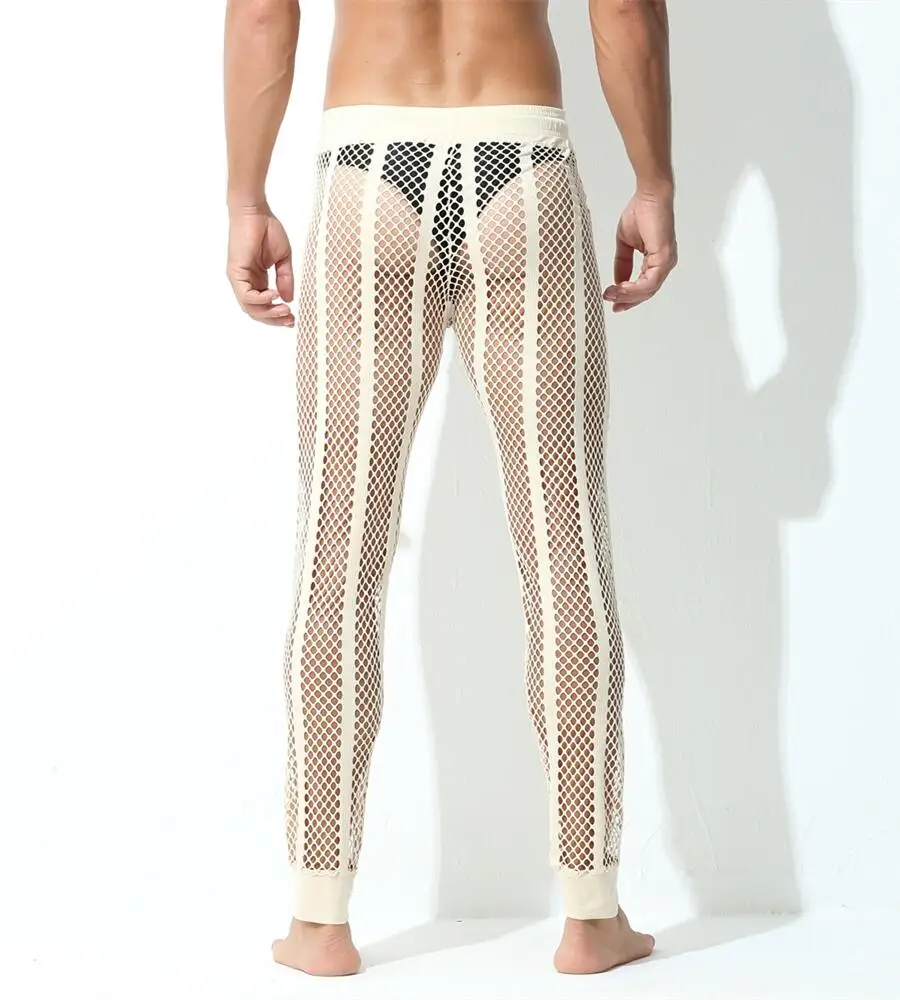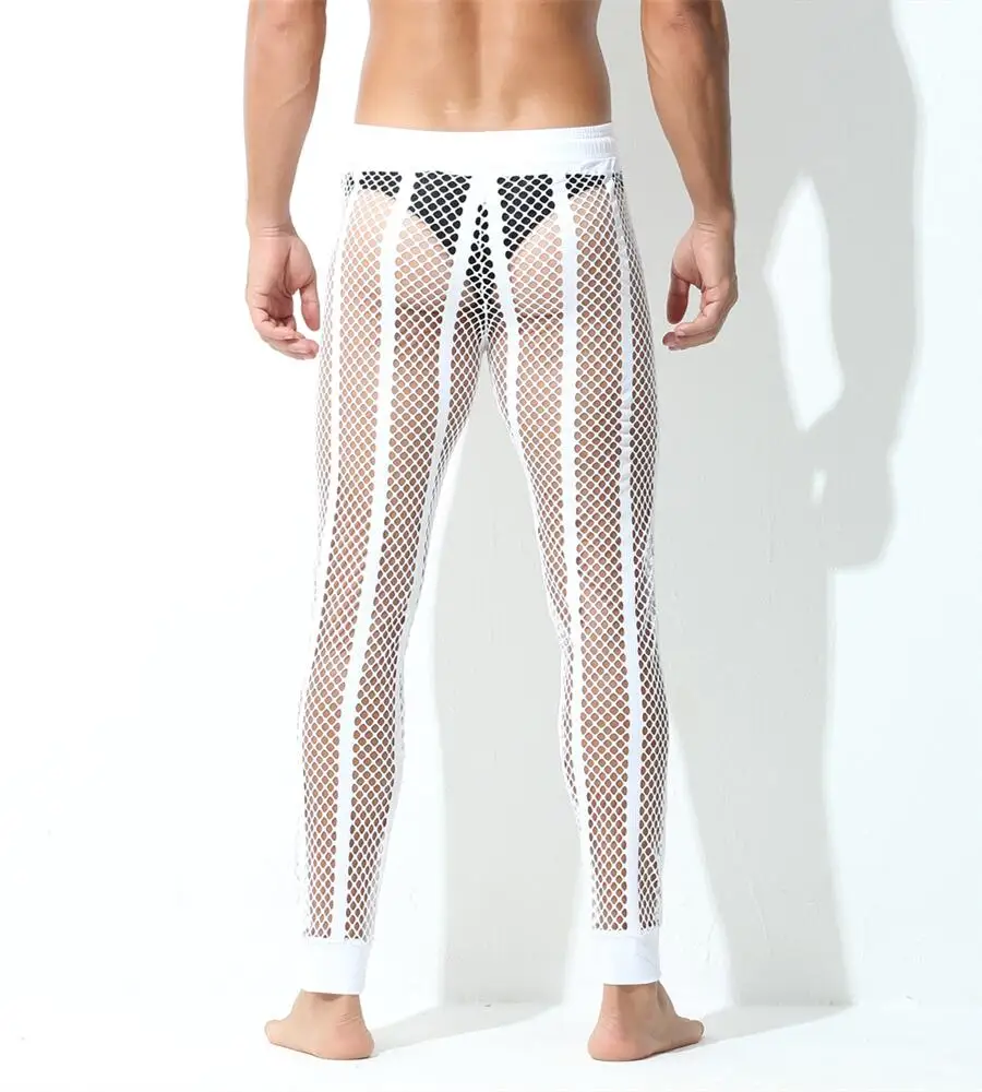 Mens Underwear Sexy Pajamas Trousers Men's Leggings Transparent Large Mesh Men Long Johns