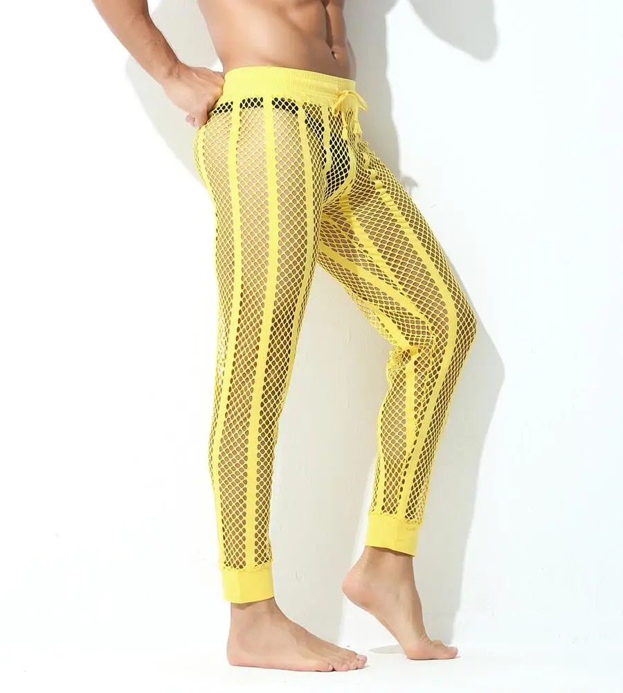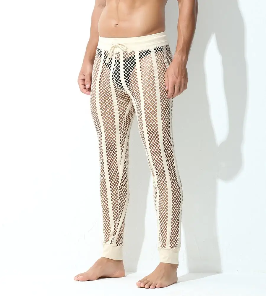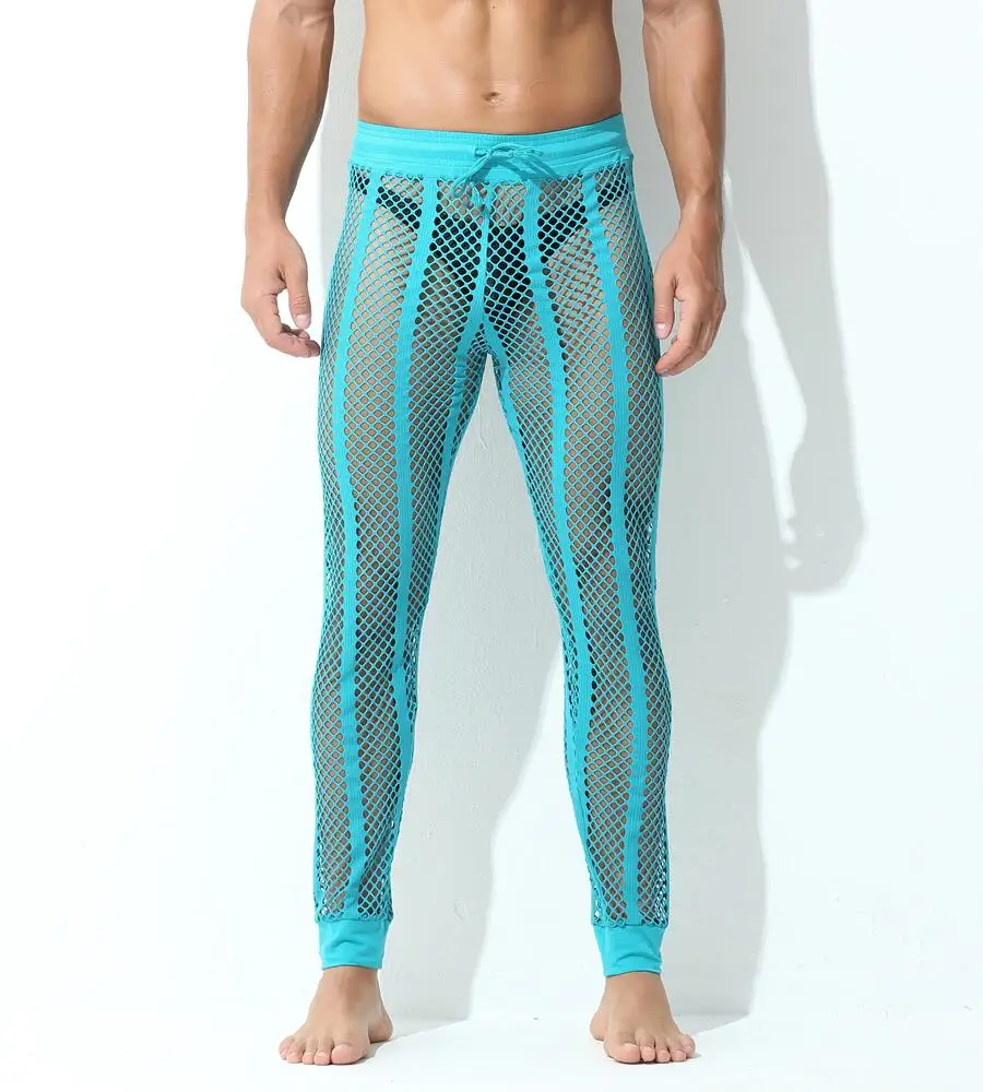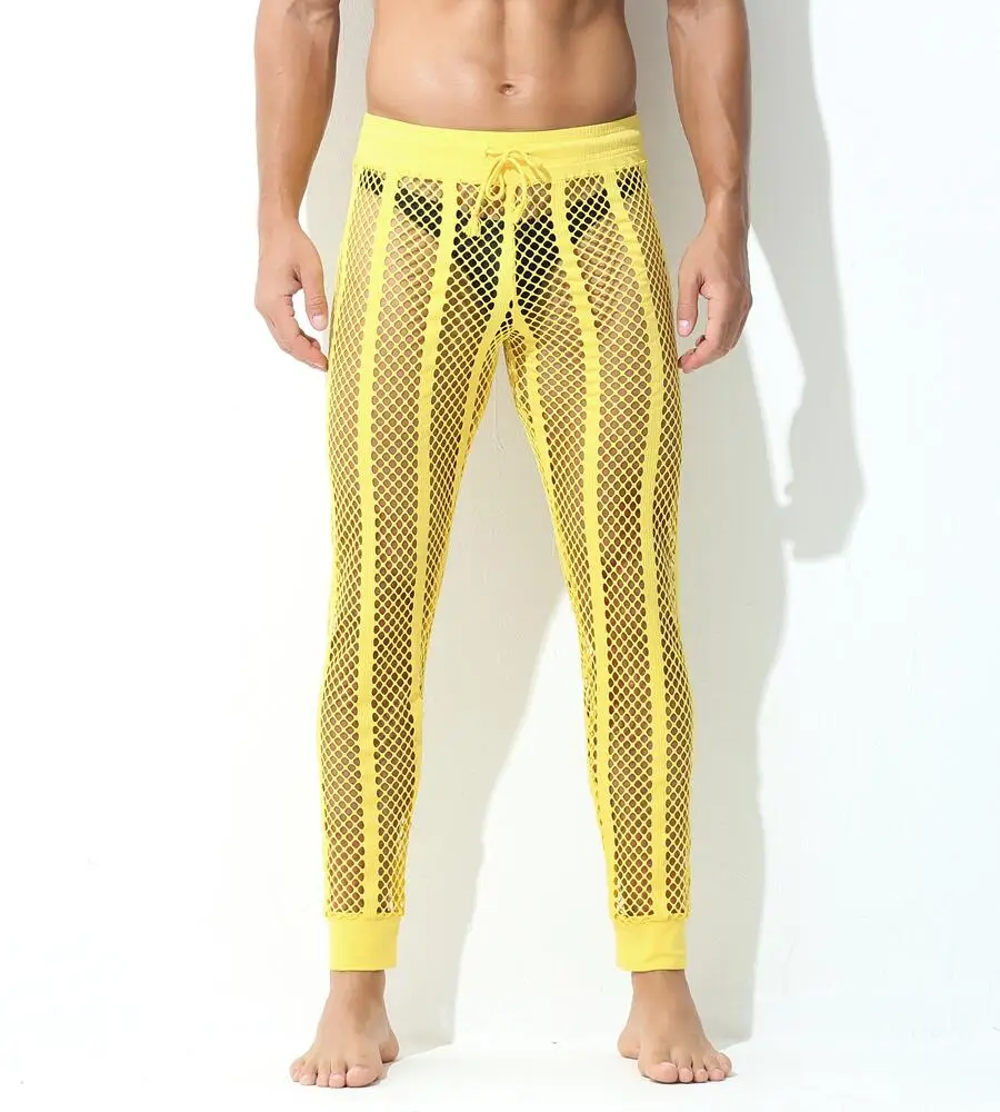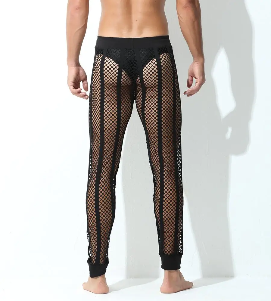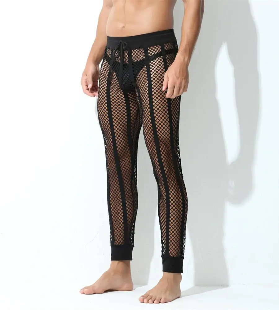 Mens Underwear Sexy Pajamas Trousers Men's Leggings Transparent Large Mesh Men Long Johns