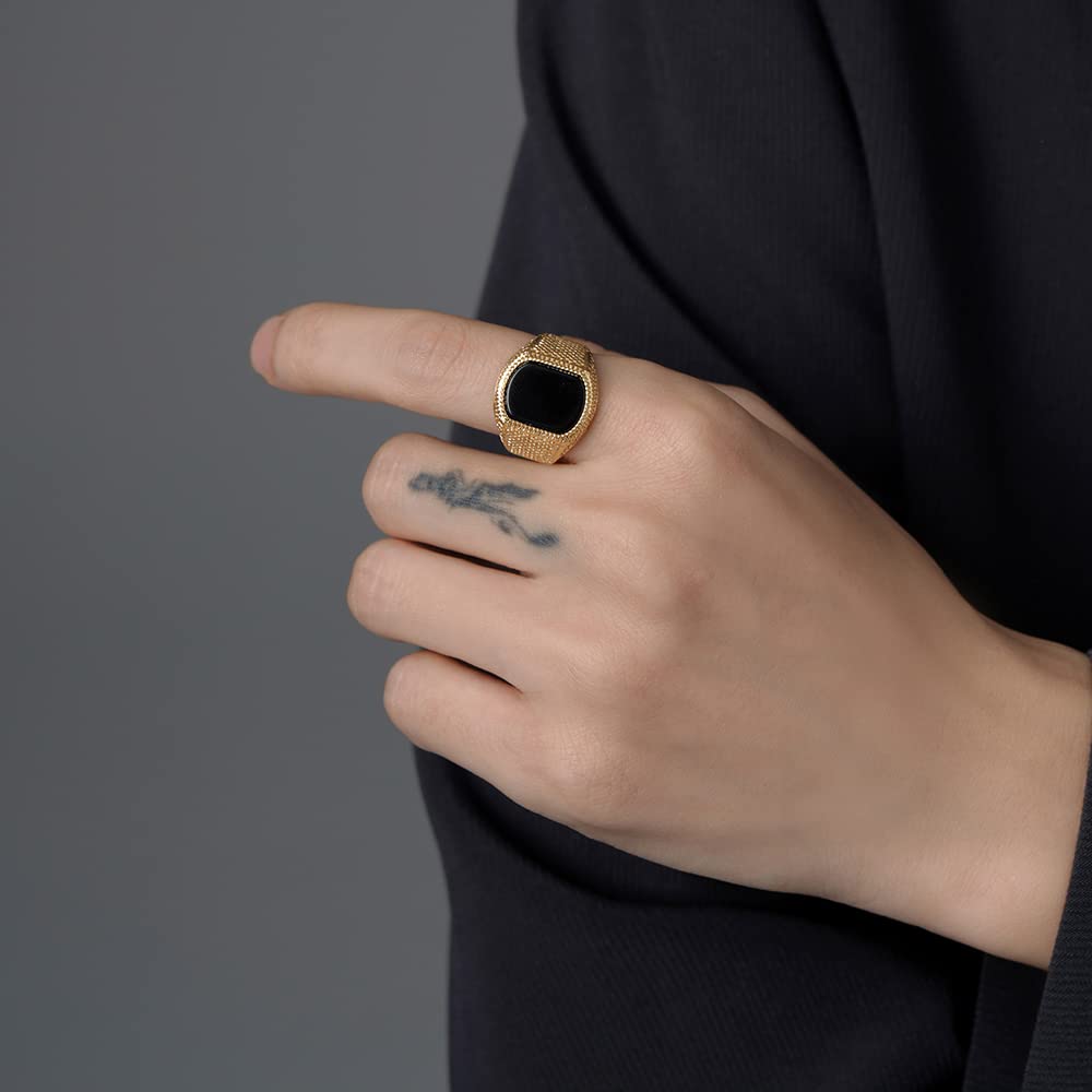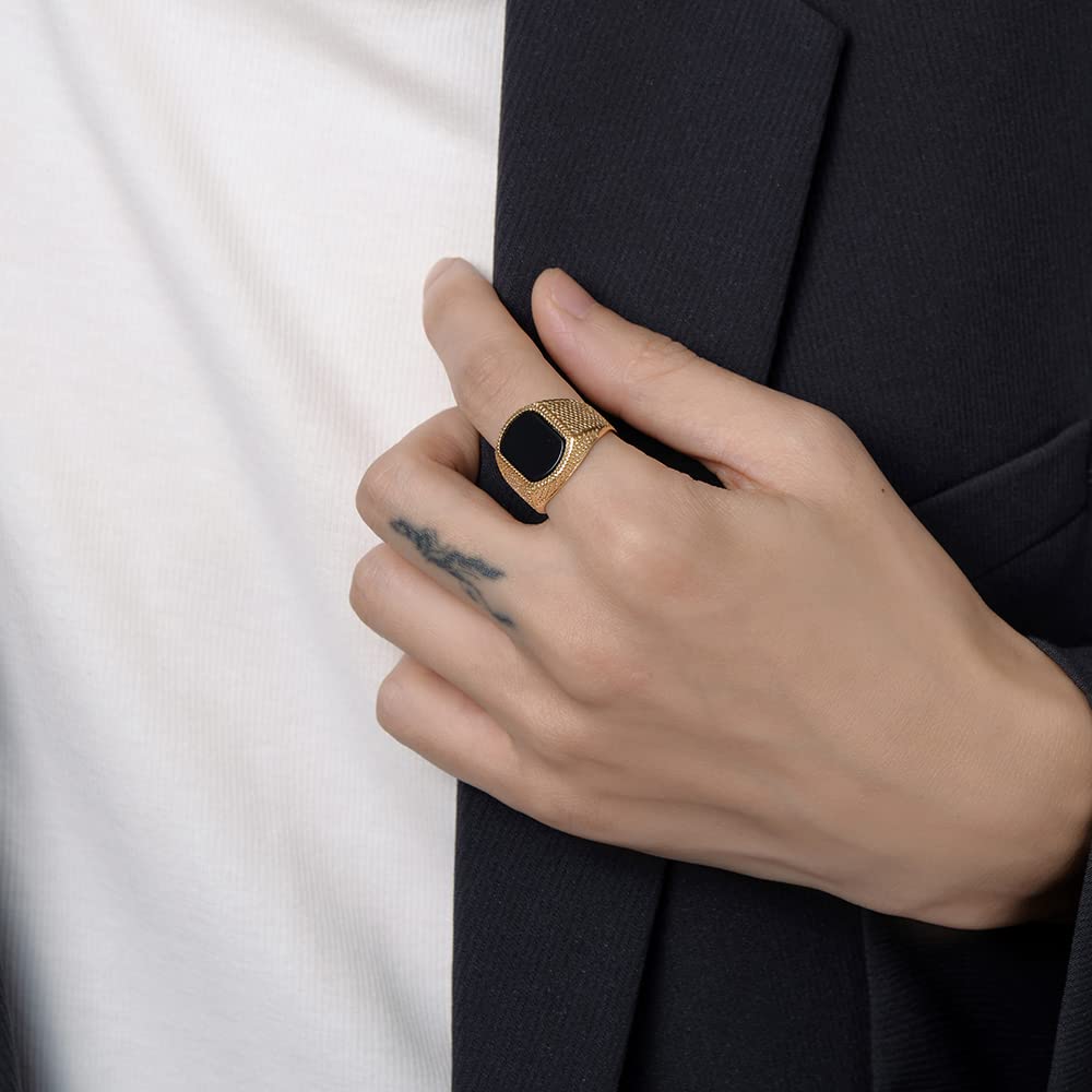 MYNENEY Retro-Vintage-Steinringe für Herren, Türkisringe, Edelstahl, Siegelring, Bikerband (Gold, 8)