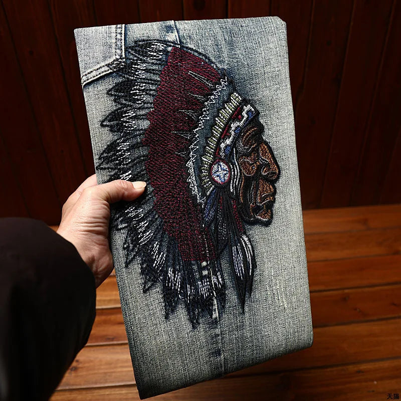 New Embroidered Perforated Light Luxury High end Jeans Men Elastic Fashion Brand Slim Fit Fashion High Street Casual Denim Pants