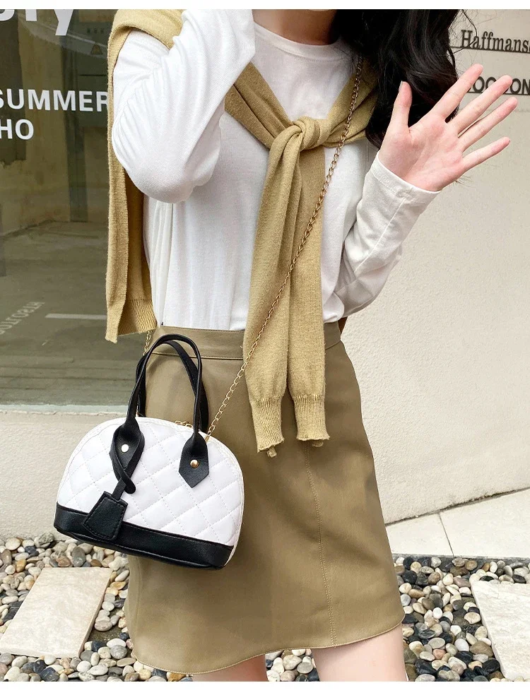 New Fashion Lingge Shell Bag Single Shoulder Messenger Bag Chain Simple Crossbody Bag Purses Contrast Color Women Handbags