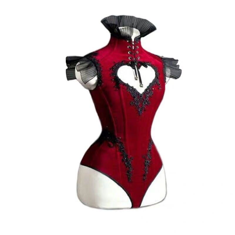 Roter Jumpsuit mit Herz-Ausschnitt und Bindeband für den Nachtclub