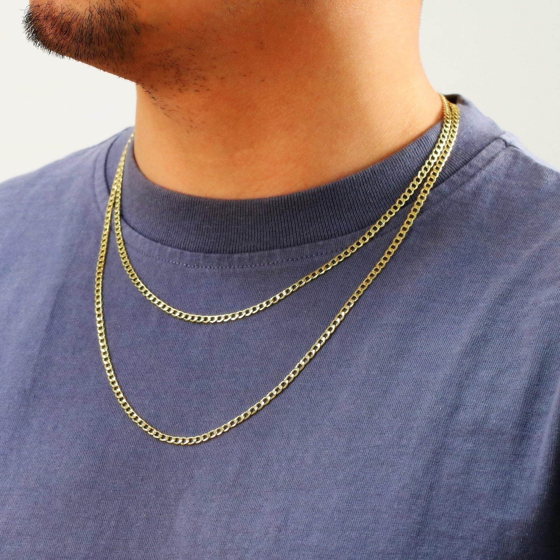 Die kubanische oder Panzerkette besteht aus flachen, ineinandergreifenden, identischen, runden Gliedern, die in der Mitte eine konkave oder leichte Vertiefung aufweisen, damit die Kette flach liegt. Jedes Glied ist fein poliert, um ein glattes Aussehen und einen unglaublichen Glanz zu erzeugen. Die kubanische Kette ist einer der klassischsten und glänzendsten Kettenstile für Männer und Frauen und bietet die perfekte Kombination aus Luxus und Brillanz.