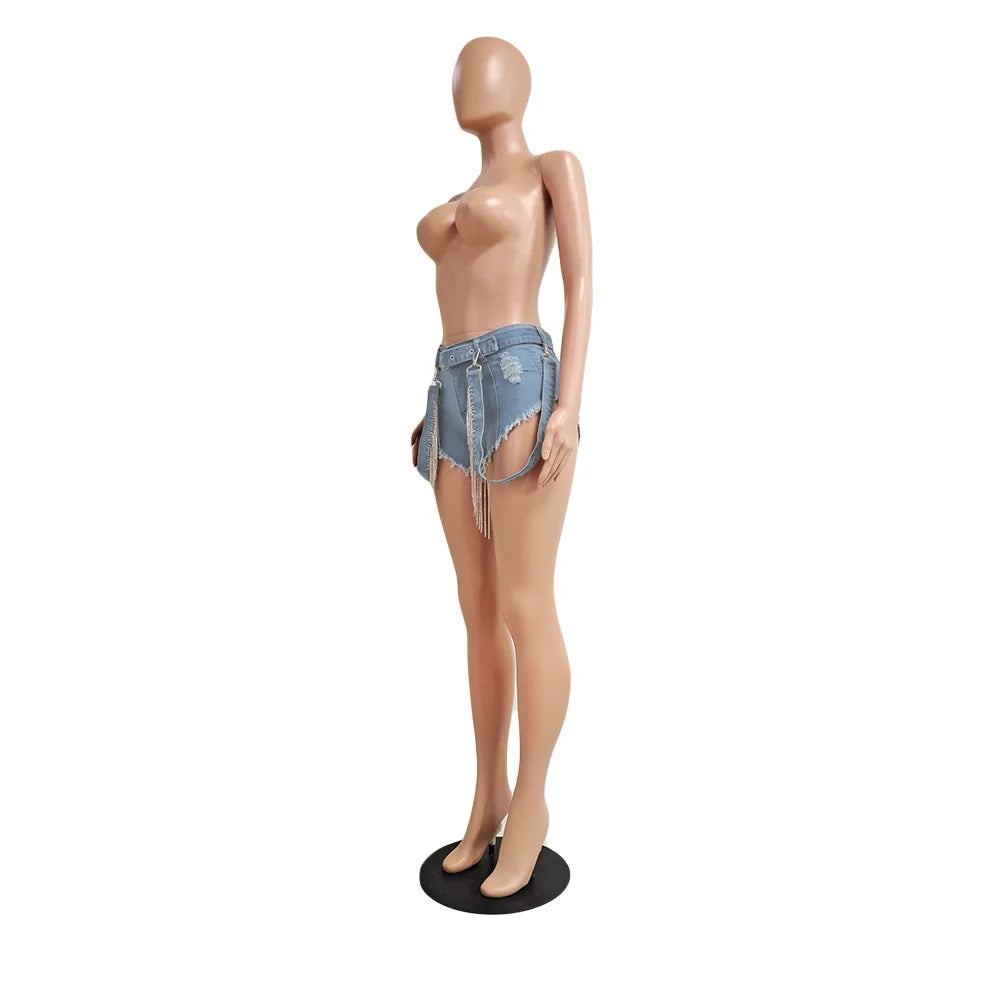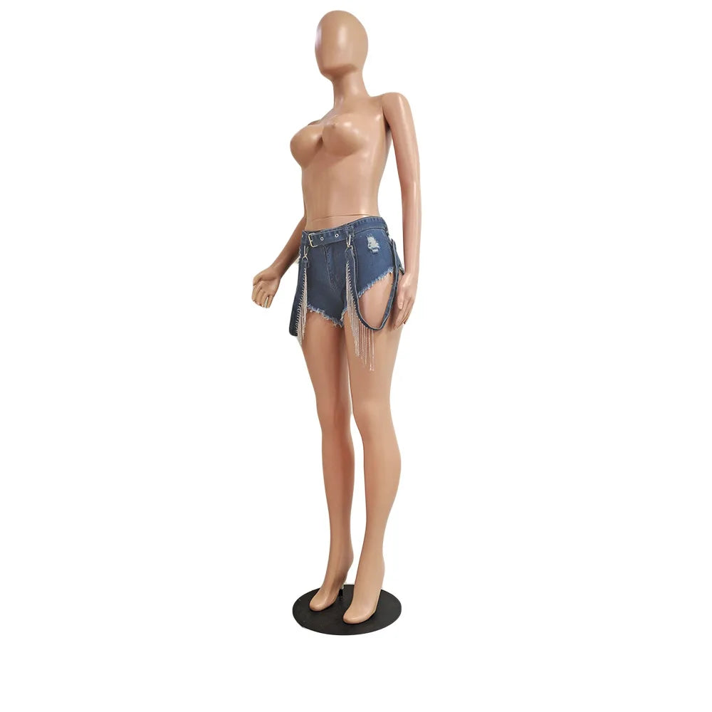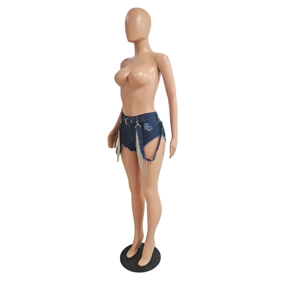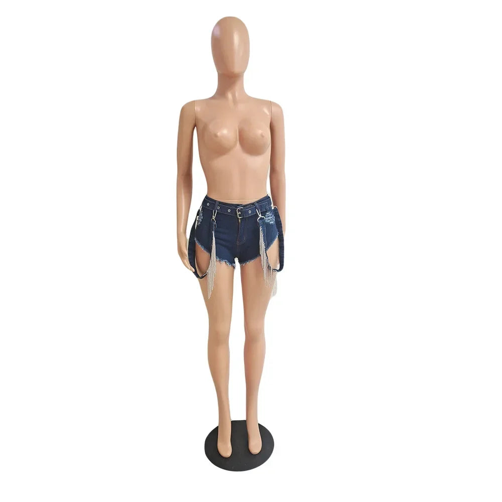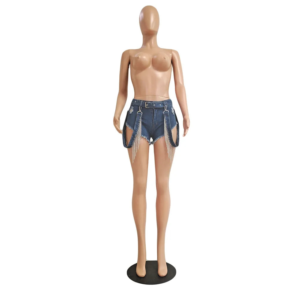 Prowow Fashion Diamond Tassel Damen Shorts Sommer Denim Superkurze Hose Neues Design Y2k Style Boutique Jeans für Party Club