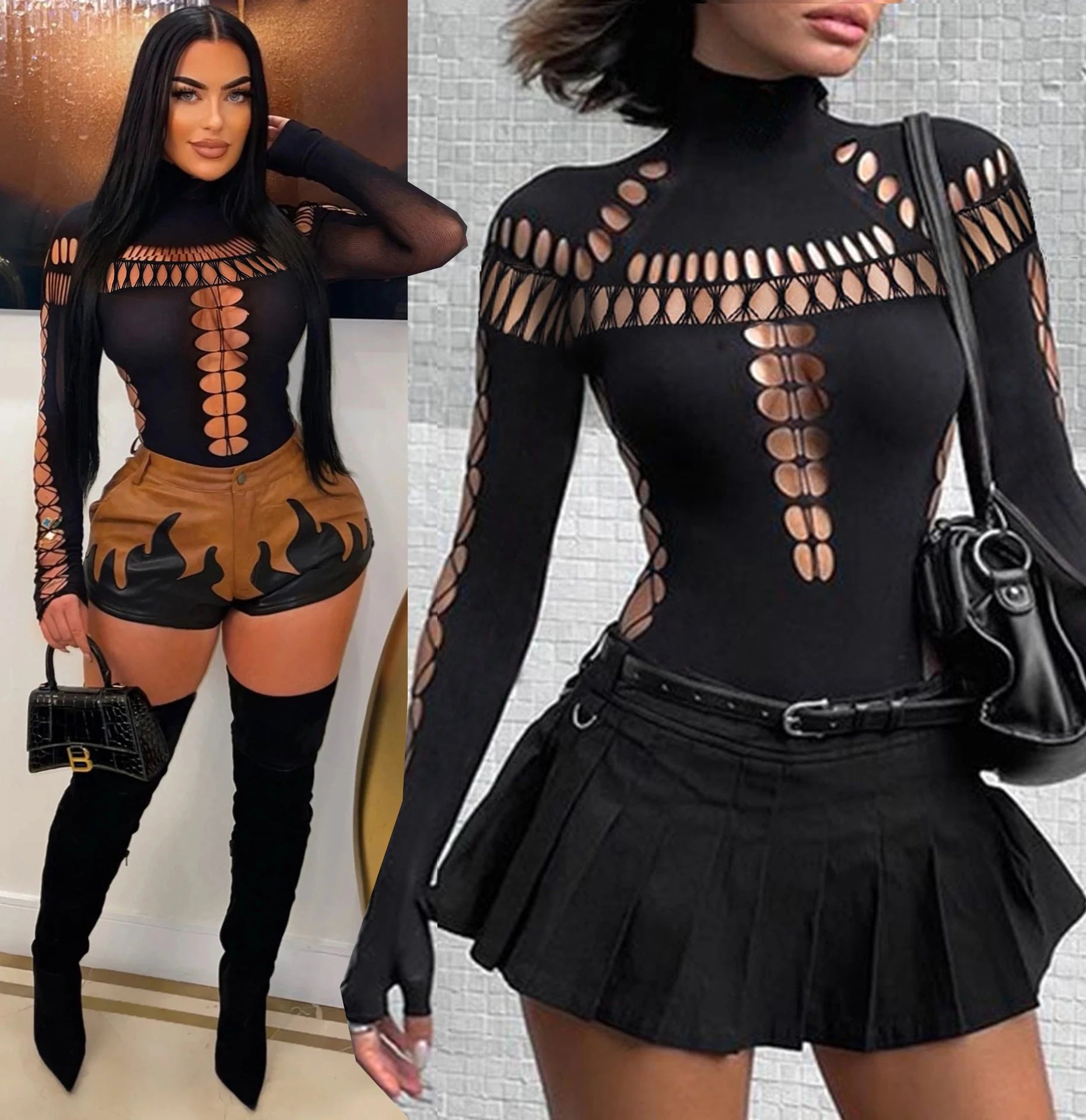 Sexy solid color Plain hollow out jumpsuit hollow out Open chest sexy curves nightclub party fine clothes bodysuit jumpsuits
