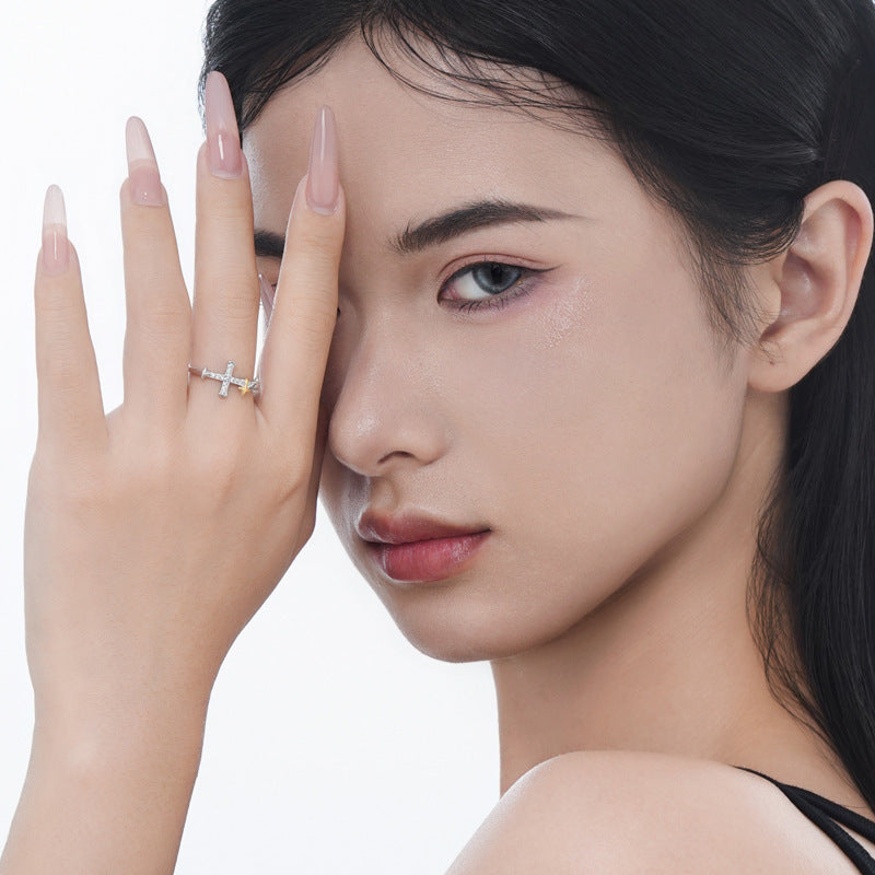 Simple Sterling Silver Diamond Cross Ring Women