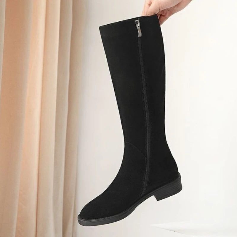 Suede Round Toe Elegant with Low Heels Fleece-Lined Ladies Knee High Shaft Shoes Autumn Winter Demi-season Women's Long Boots
