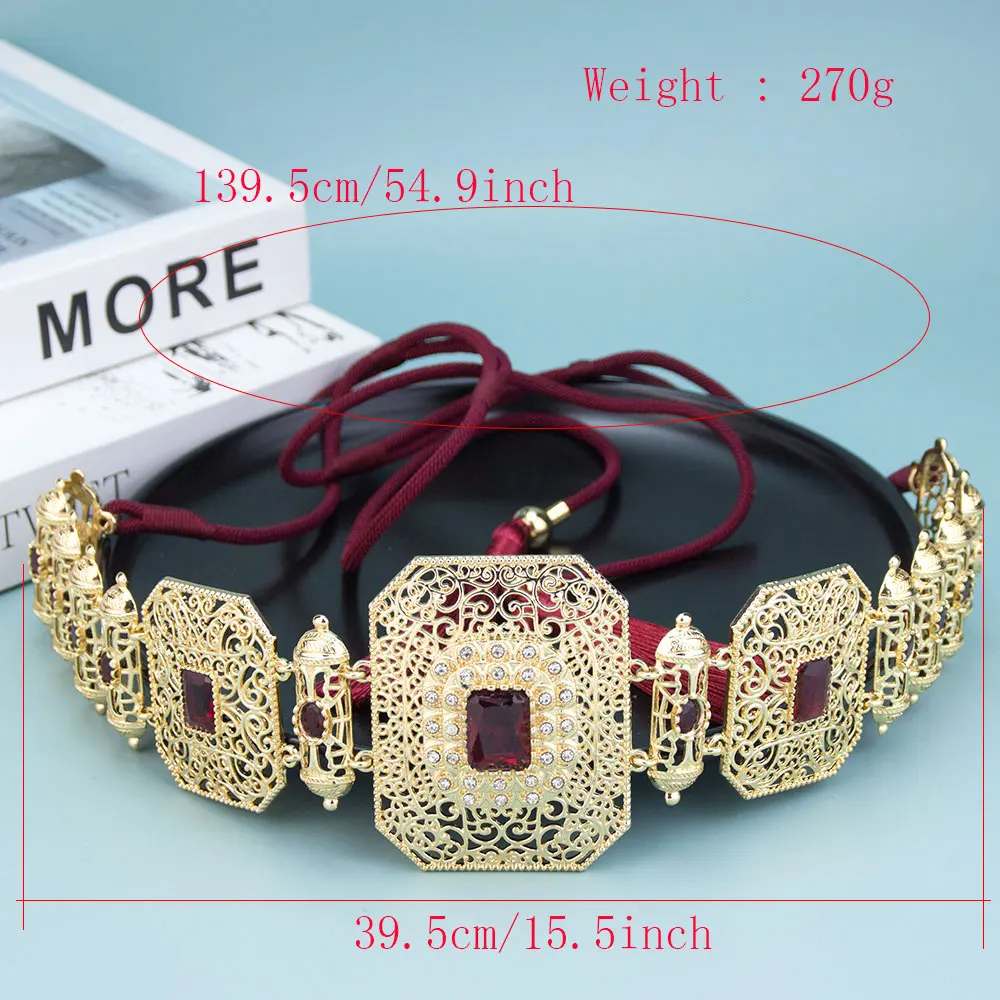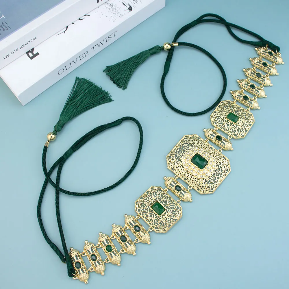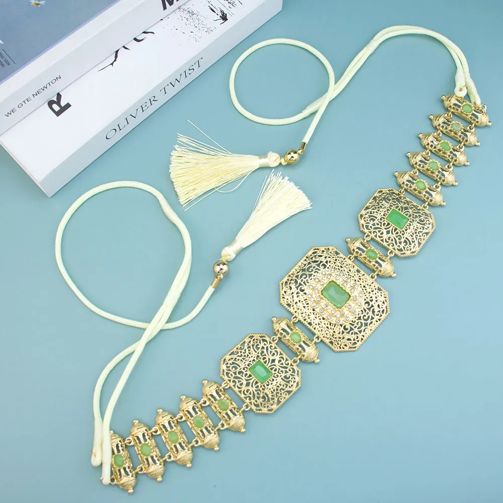 Sunspicems Gold Color Moroccan Caftan Belt Arabic Hand Rope Waist Chain Adjustable Length Women Belt Tassel Metal Body Jewelry