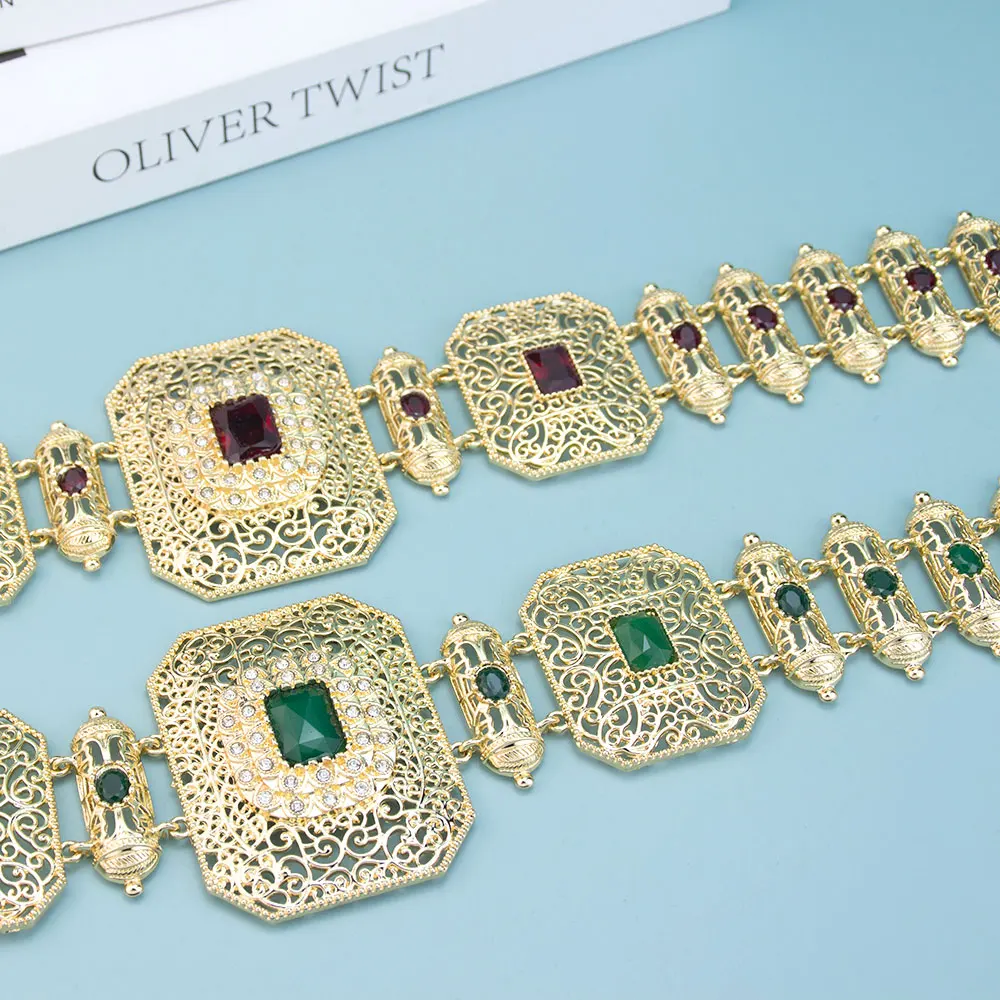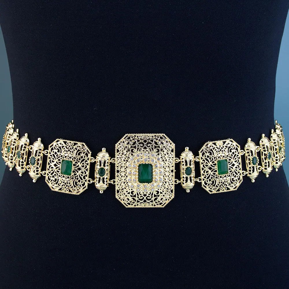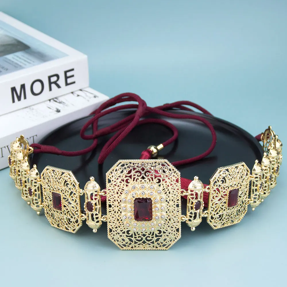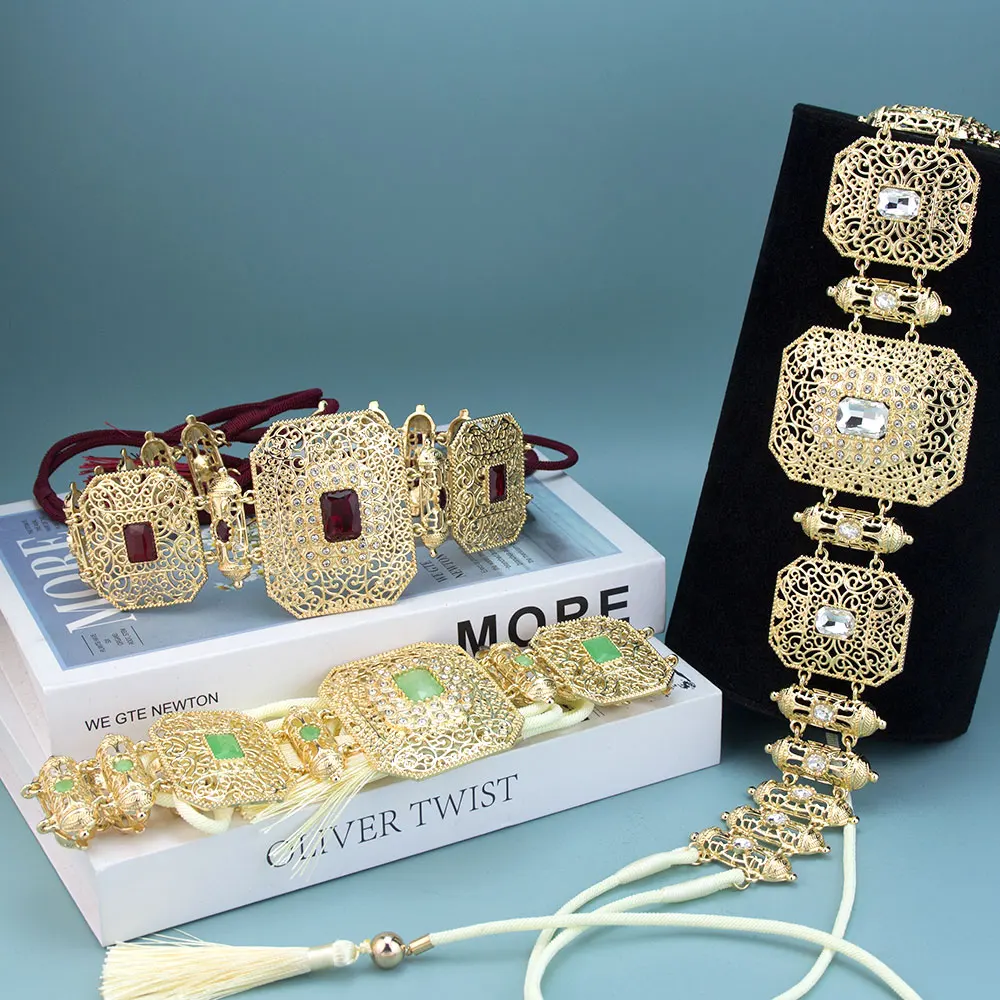 Sunspicems Gold Color Moroccan Caftan Belt Arabic Hand Rope Waist Chain Adjustable Length Women Belt Tassel Metal Body Jewelry