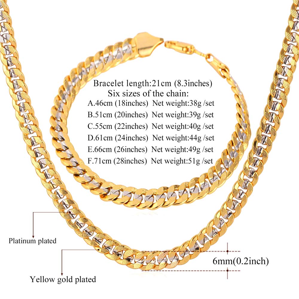 - Größe der Modeketten: Modeketten-Schmuckset bestehend aus einer Halskette und einem Armband, kubanische Breite 6 mm (0,2 Zoll), Halskettenlänge wählbar 18/20/22/24/26/28/30 Zoll; Armbandlänge 8,3 Zoll (21 cm).