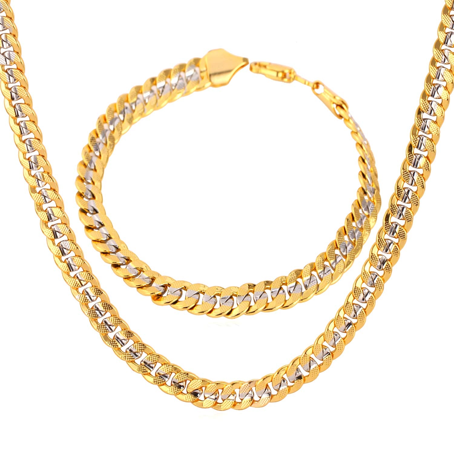 U7 Herren-Halsketten- und Armbandset aus zweifarbigem Platin und 18 Karat vergoldeter kubanischer Panzerkette (45,7 cm/21,1 cm)