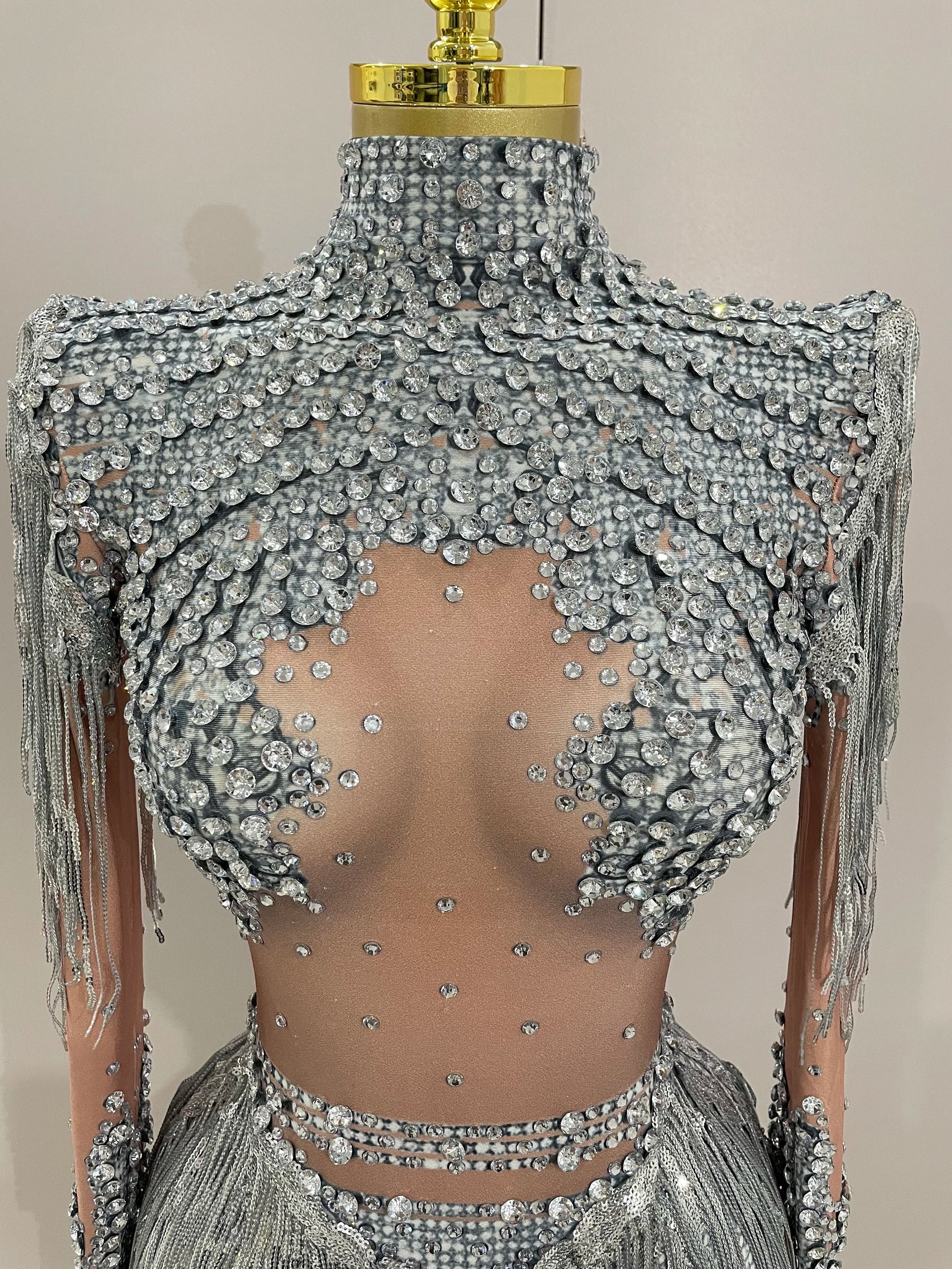 Women Sparkly Rhinestone Sequin Tassel Stretch Bodysuits 2025 New Arrival Birthday Party Nightclub Dj Stage Performance Costume