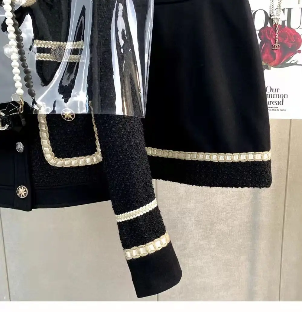 Damen Tweed Jacquard Duftender Anzug Jacke Mantel Top Und Rock Zweiteiliges Set Elegantes Schickes Outfit Winter Arbeitskleidung Party Kleidung