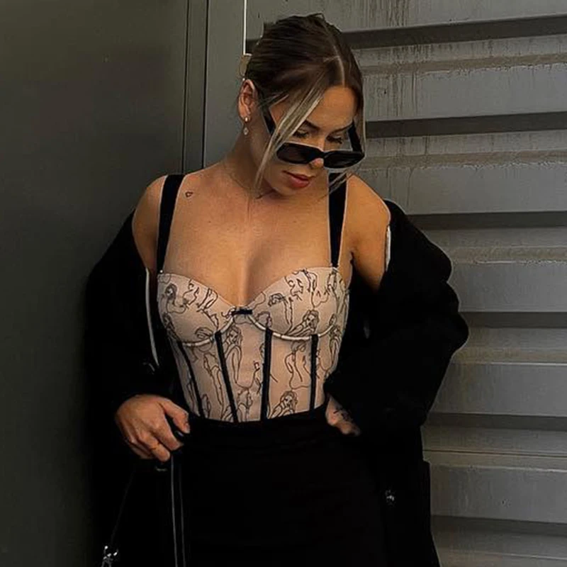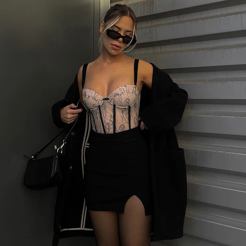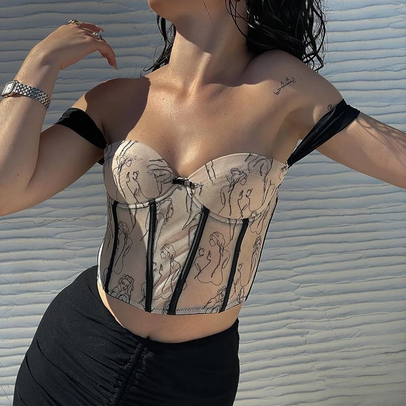 Women's Top Suspender Bump Color Printed Bouquet Waist Top Sexy Short Style Hot Girl Crop Vest
