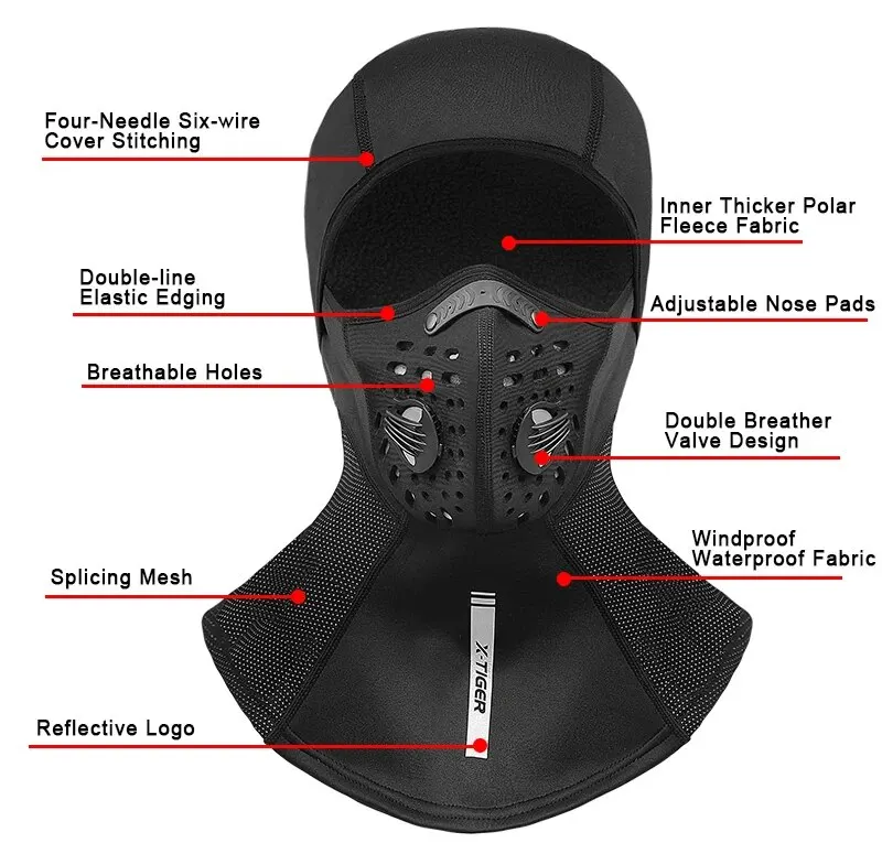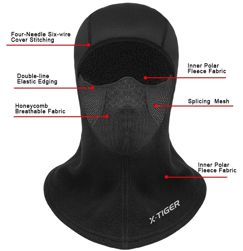 • Winter Sports Protection :The X-Tiger Winter Ski Mask is a versatile full-face cover for skiing, skating, and cycling, providing optimal protection against cold and dust.