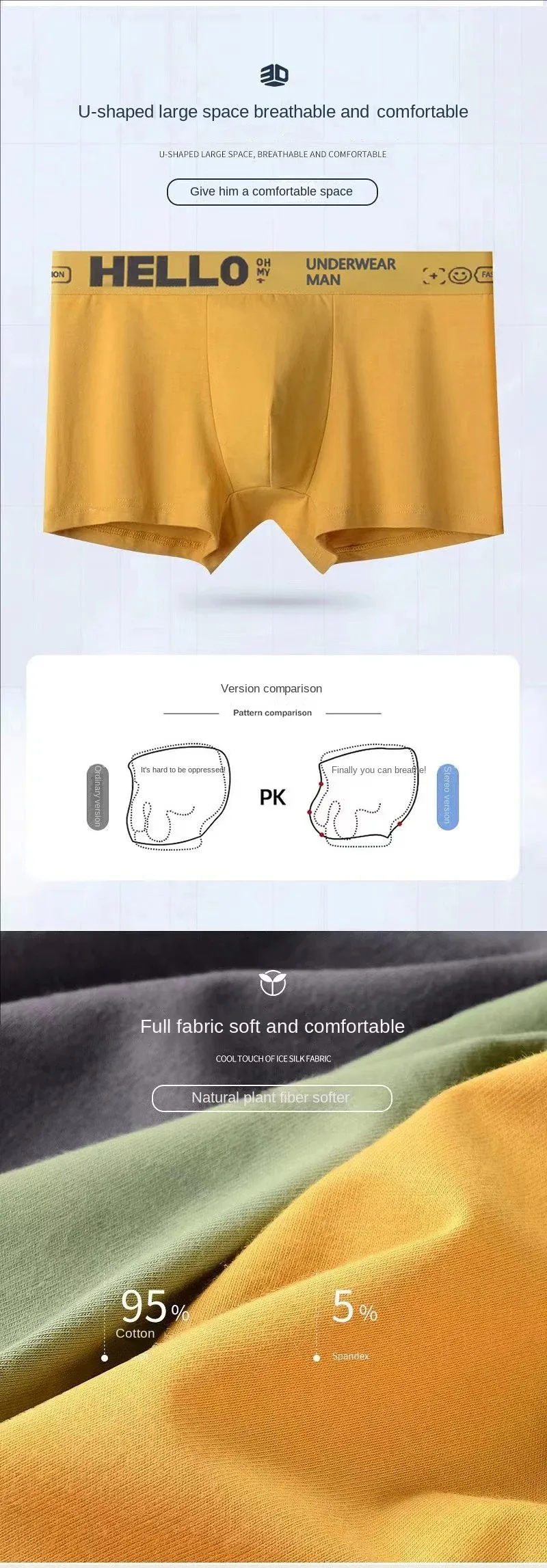 1/5/10 PCS Men's and boys Underwear Sports Seamless Comfortable Breathable Teen Boxer Briefs Men‘s Mid Rise Plus Size