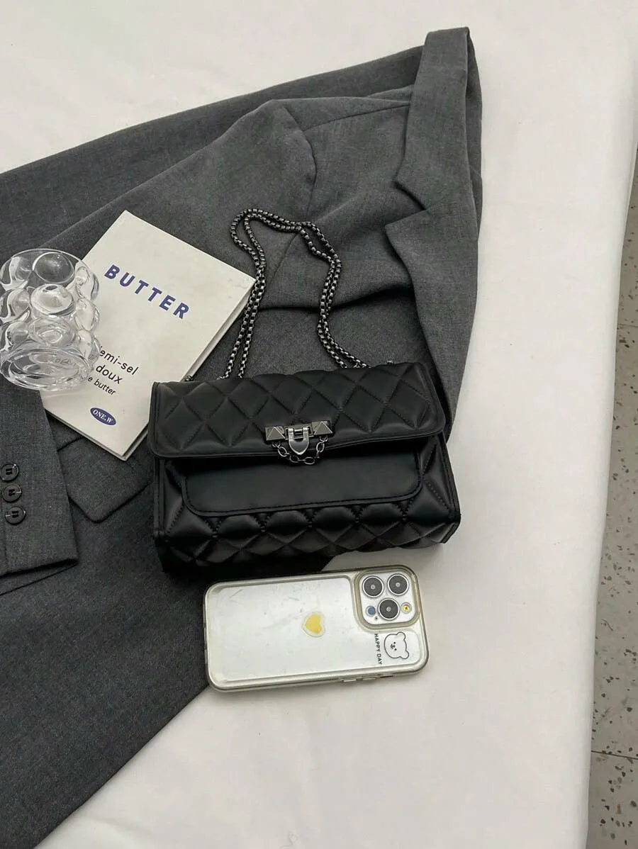 1 simple and stylish diamond grid crossbody bag, metal chain shoulder bag, suitable for women's daily leisure use-ll