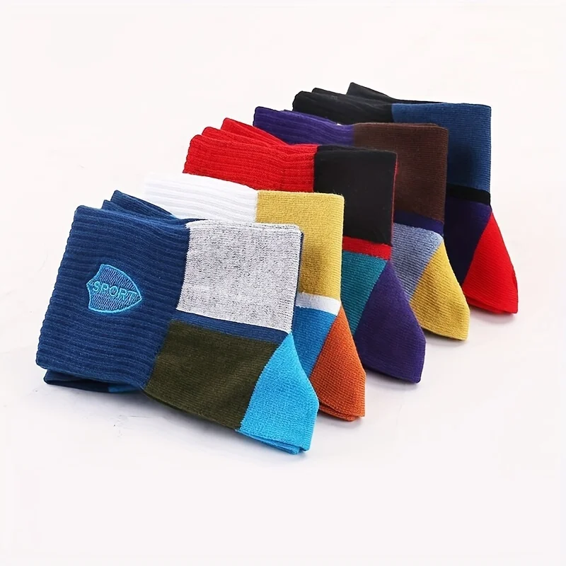 10/5/4/3 pairs of men's formal color blocking socks, comfortable and breathable soft business socks, men's socks and stockings-