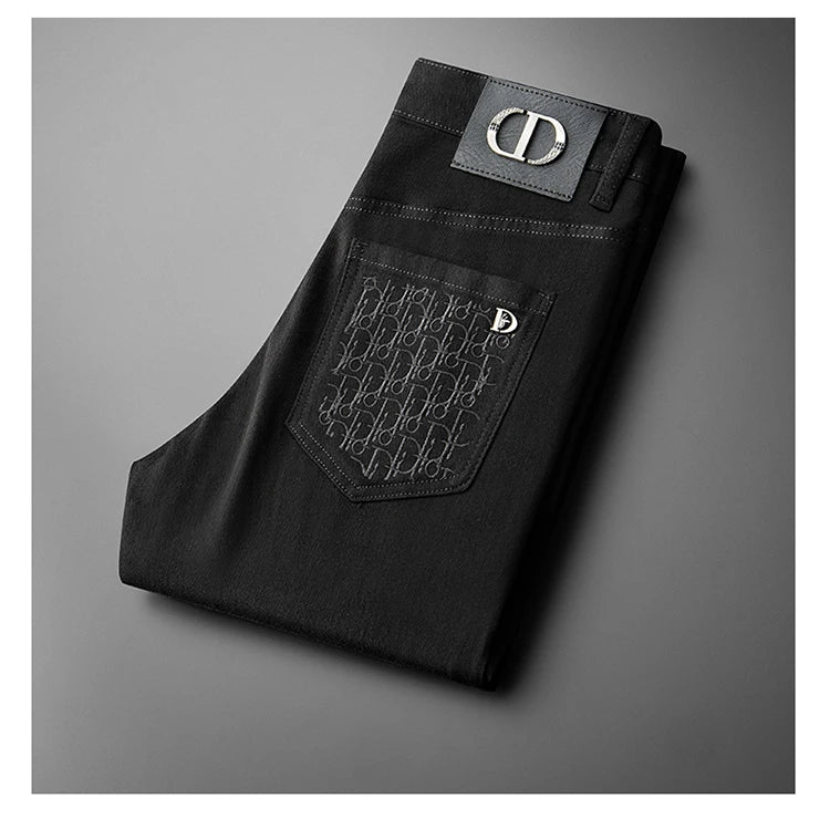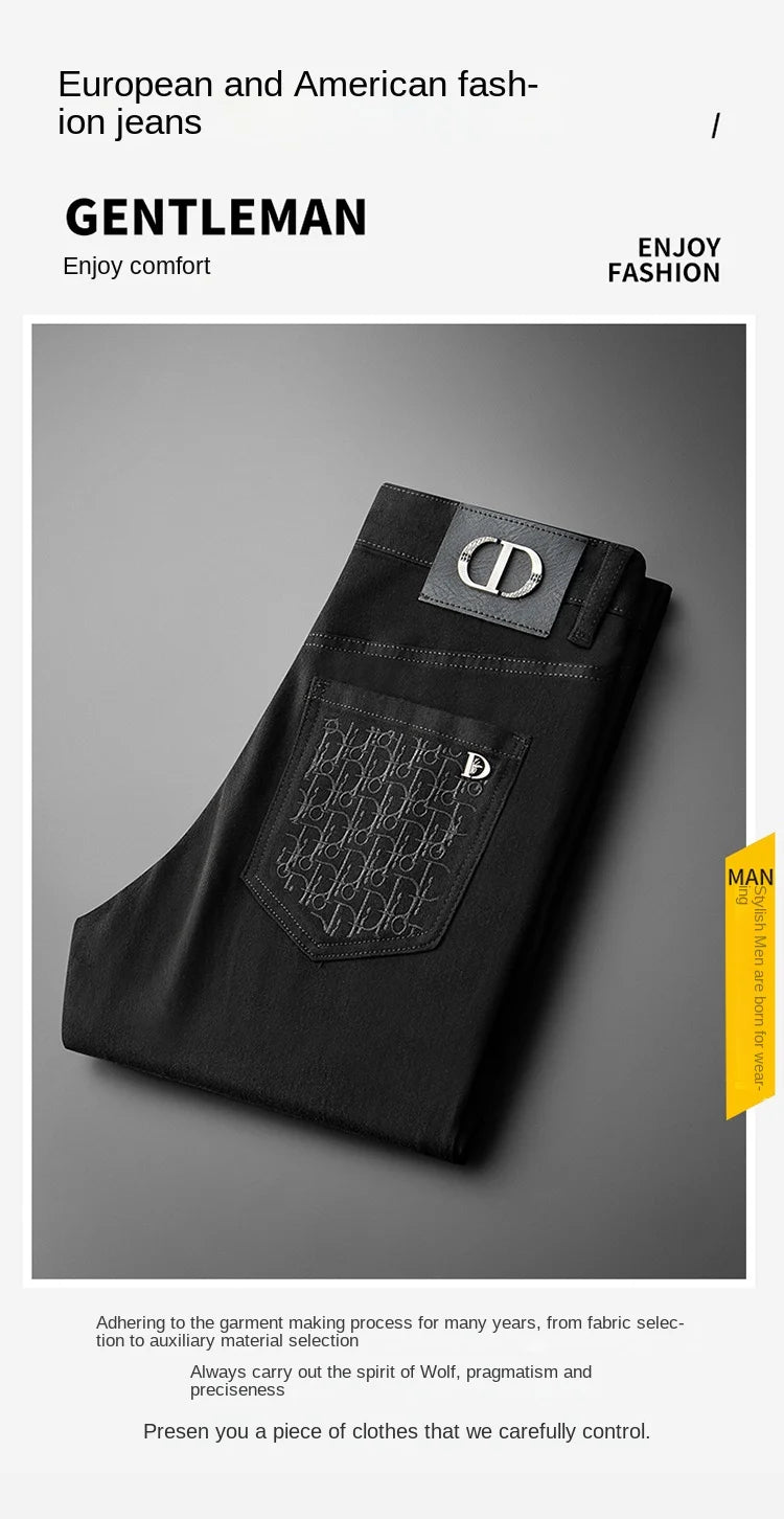 2024 new MEN'S jeans light luxury slim fit straight leg elastic fashion casual cotton wash black versatile comfortable denim