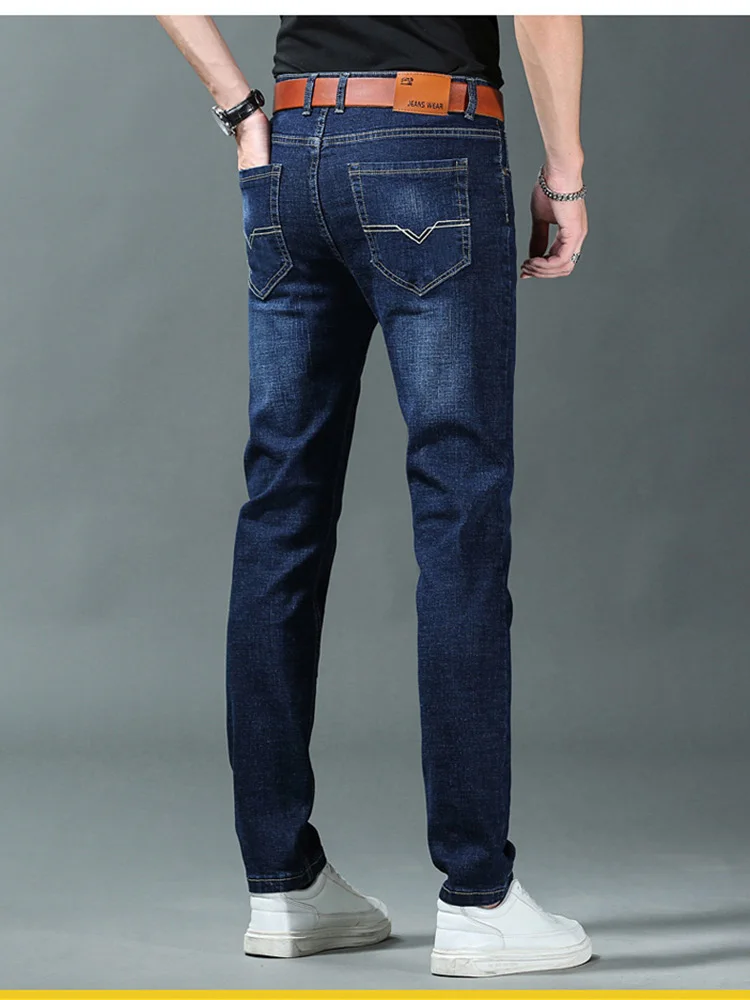 2024 New Ultra-Thin Breathe Stretch Jeans Men's Classic Business Slim Trousers Black Blue Straight Male Brand Clothing Pants