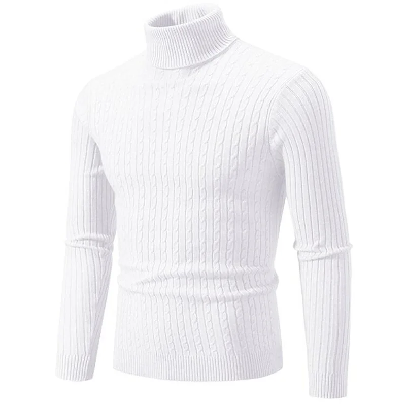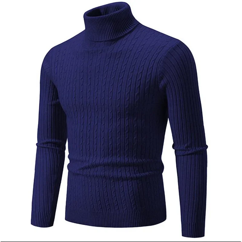 2025 New Men Solid Colour Turtleneck Sweater Black , White , Royal Blue, Fashion Simple Male Casual Pullover Tops