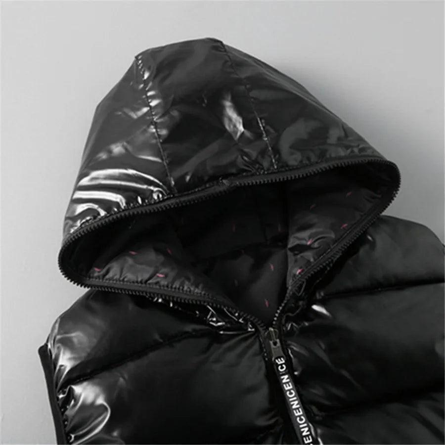 2025 New Men Winter Vests Hooded Glossy Cotton Padded Sleeveless Coat Male Waterproof Thick Warm Waistcoat Men's Clothing 6XL