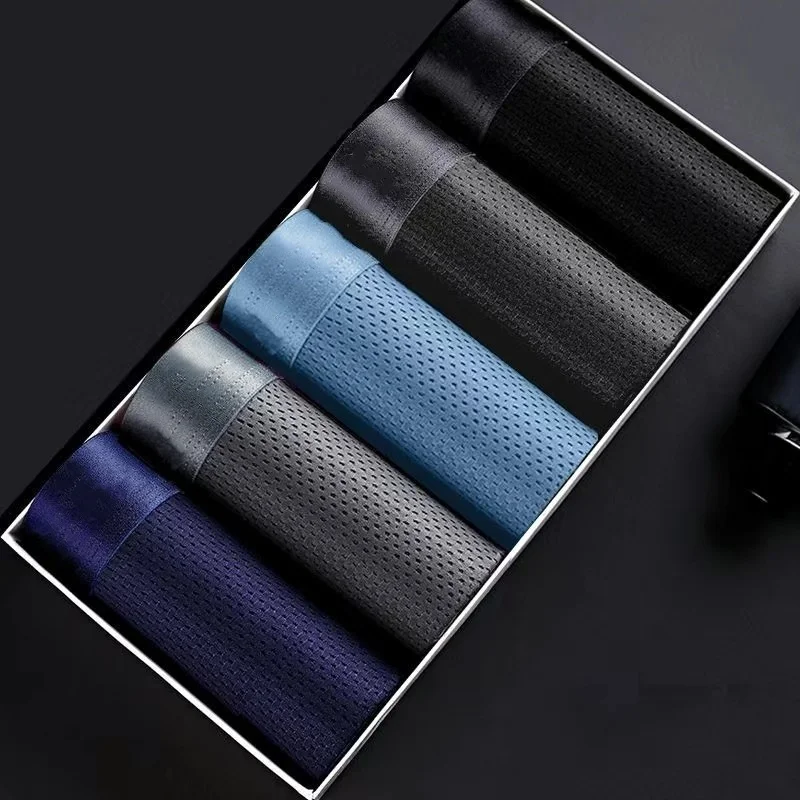 5Pcs/Lot Men's Underwear Men's Business Ice Silk Mesh Underwear Summer Cool Sexy Breathable Antibacterial Underwear Large Size