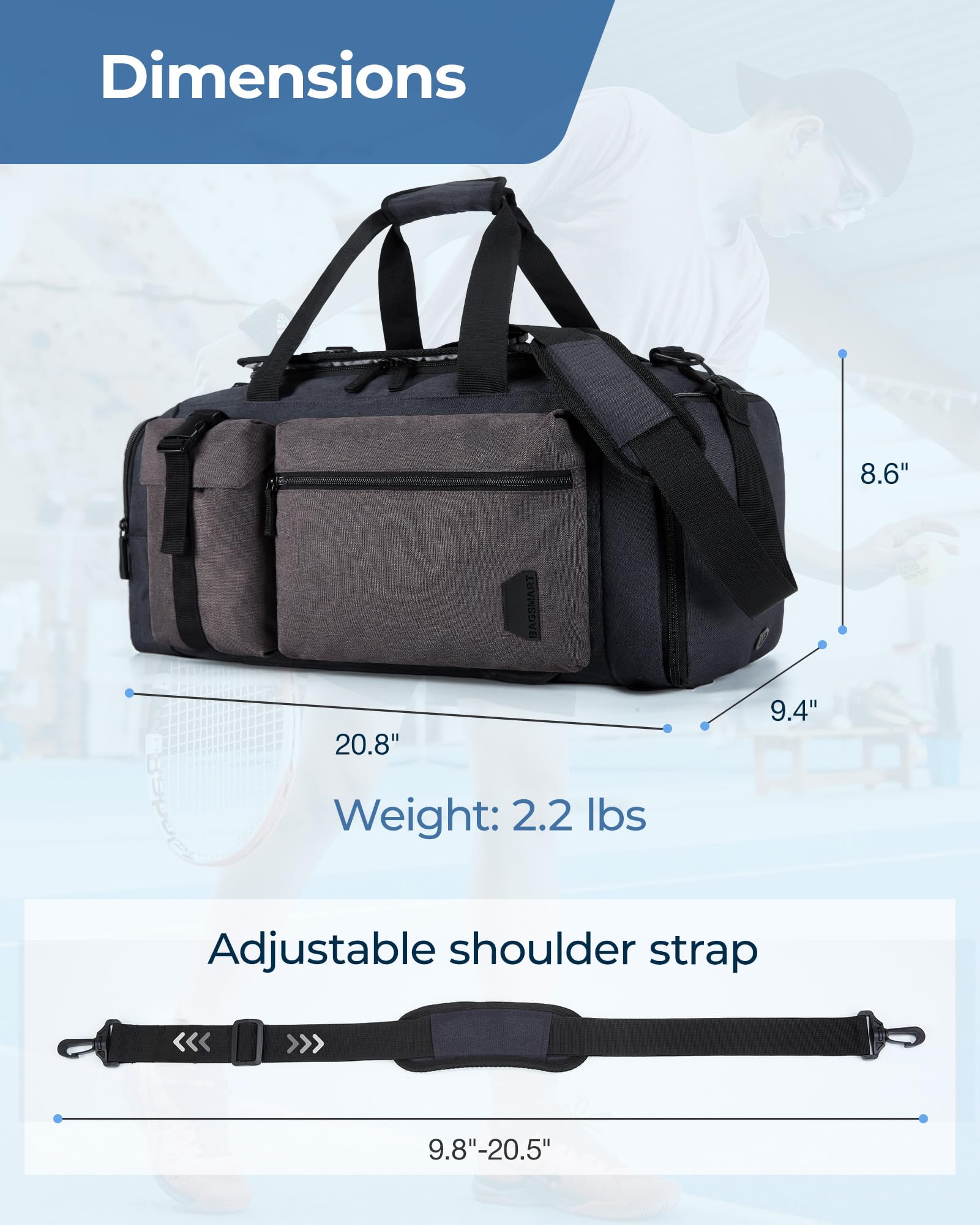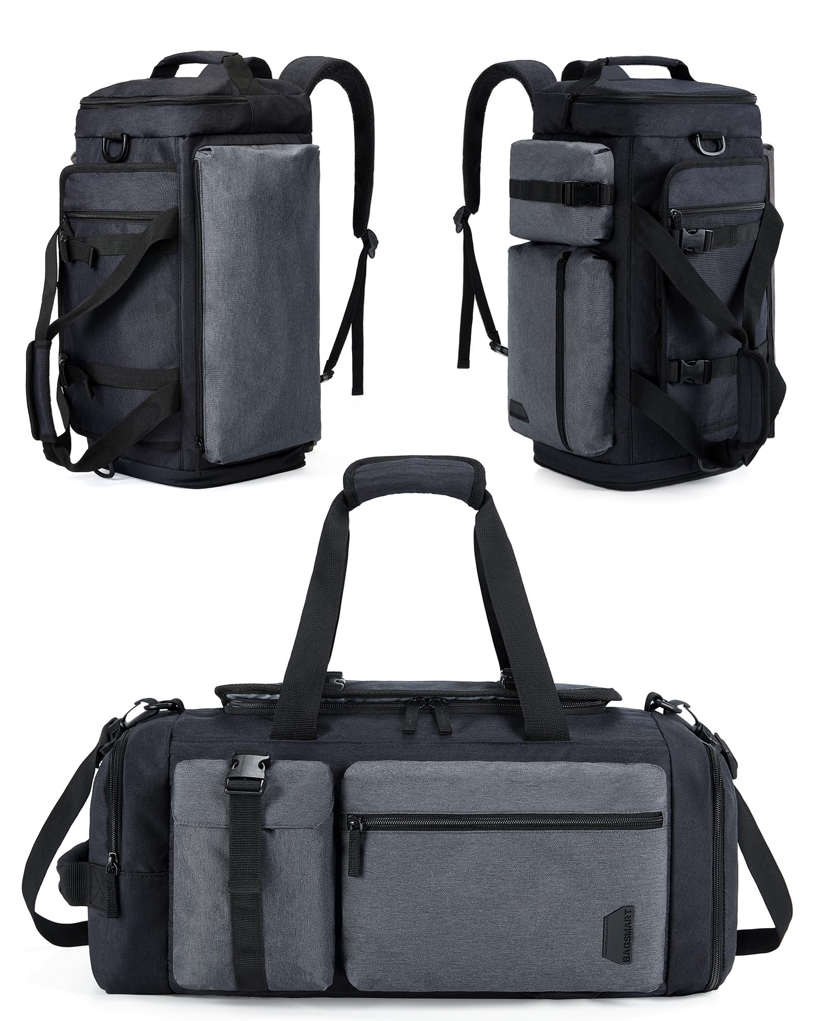 BAGSMART Gym Bag for Men, Sports Duffel Bags for Traveling, Weekender Overnight Bag with Shoe Laptop Compartment, Carry on Backpack for Airplanes-Black-gray