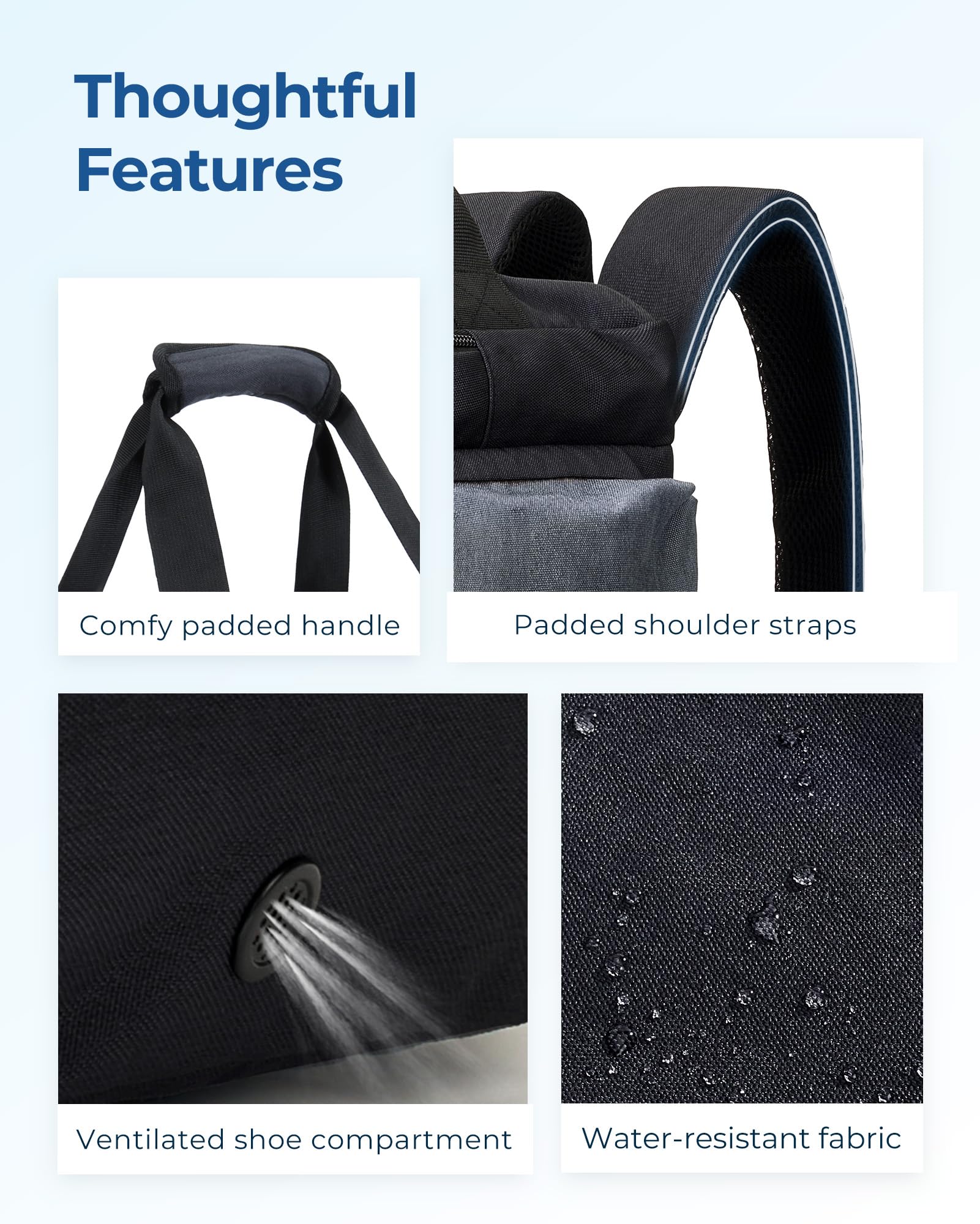 - ๐๐ก๐จ๐ฎ๐ ๐ก๐ญ๐๐ฎ๐ฅ ๐ ๐๐๐ญ๐ฎ๐ซ๐๐ฌ: The overnight bag exterior buckle straps are designed for easy gear attachment. Also features a contoured, padded shoulder straps, Soft, padded back panel, breathable mesh๏ผsmooth two-way zippers, and water-repellent polyester fabric.