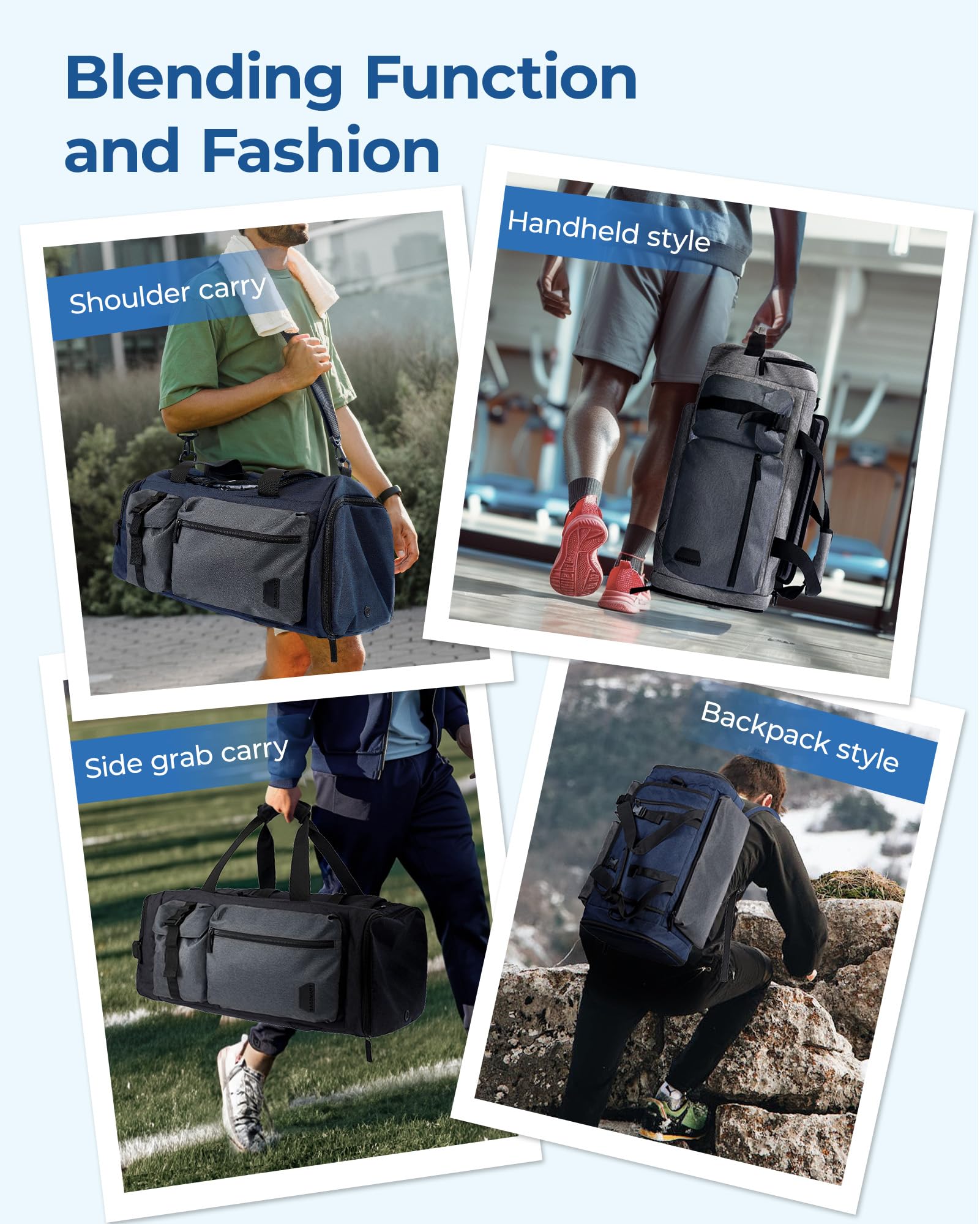 - ๐๐จ๐ง๐ฏ๐๐ซ๐ญ๐ข๐๐ฅ๐ ๐๐๐ฌ๐ข๐ ๐ง: This gym bag offers different carrying options. It can be used as a dufflel or backpack. Convertible straps and stowable shoulder straps allow you to carry this bag as a backpack or duffle. Carrying it like a duffel or wear it like a backpack with ease.