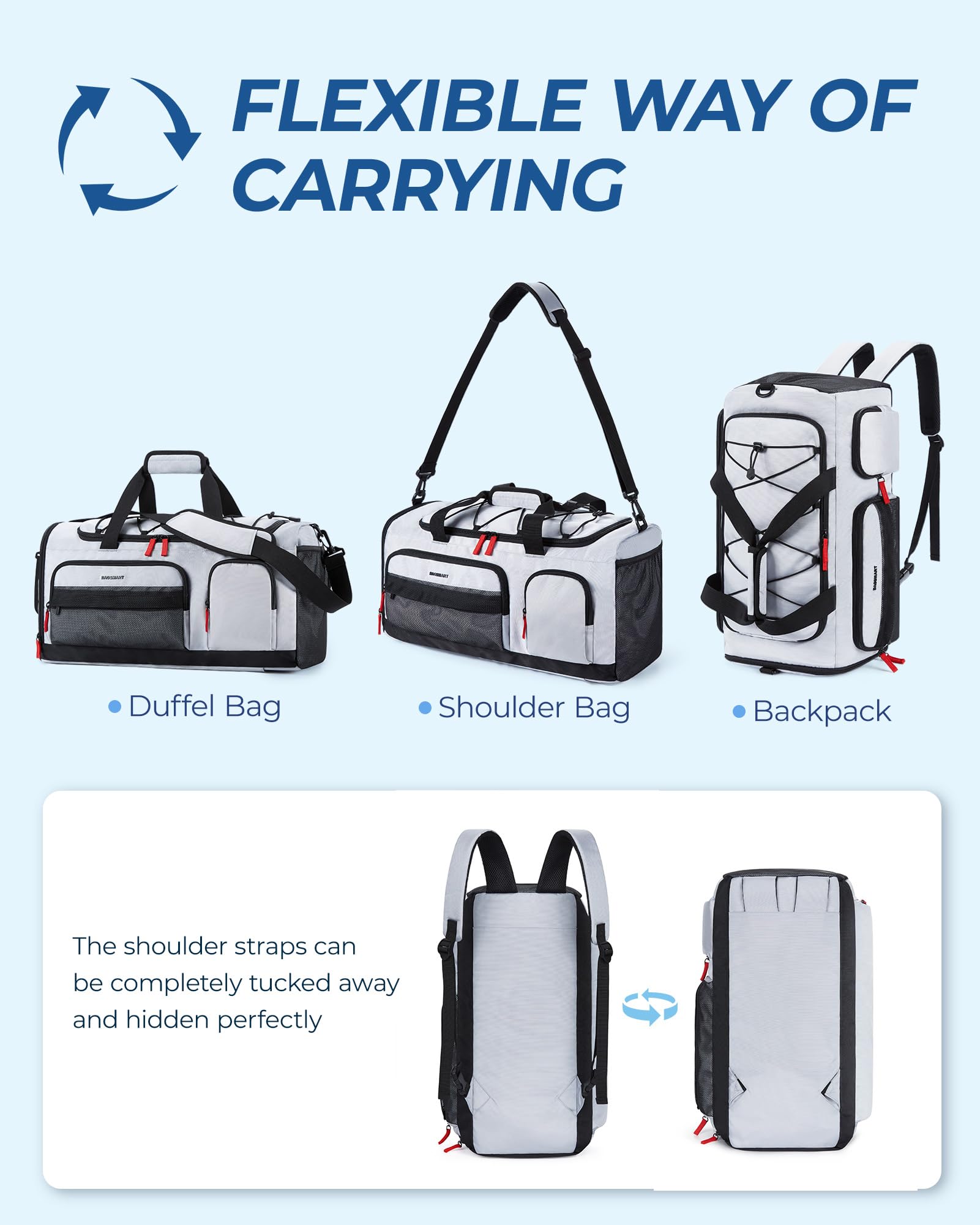 - Three-In-One Design: This gym bag offers ultimate versatility with its three-in-one design. Wear it as a backpack, carry it as a duffle bag, or simply hold it as a shoulder bag. The adjustable shoulder straps can be completely hidden, providing a sleek look and allowing you to switch between styles effortlessly