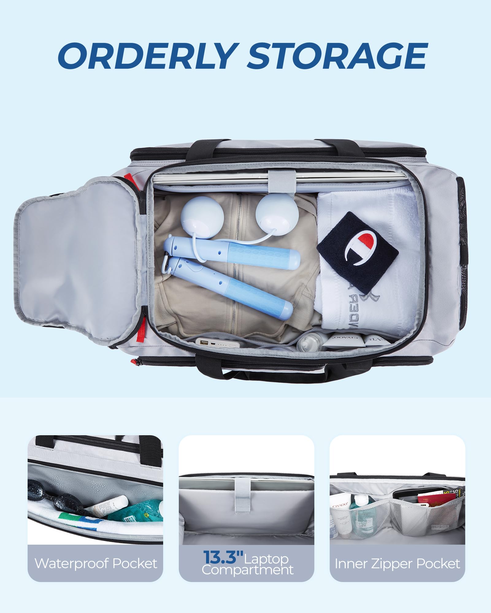 BAGSMART Gym Bag for Women & Men, 35L Sports Travel Duffel Bag with Shoe Compartment,Anti-Theft Carry On Weekender Bag for Airplane, Water Resistant Workout Overnight Backpack for Travel Gym,Grey