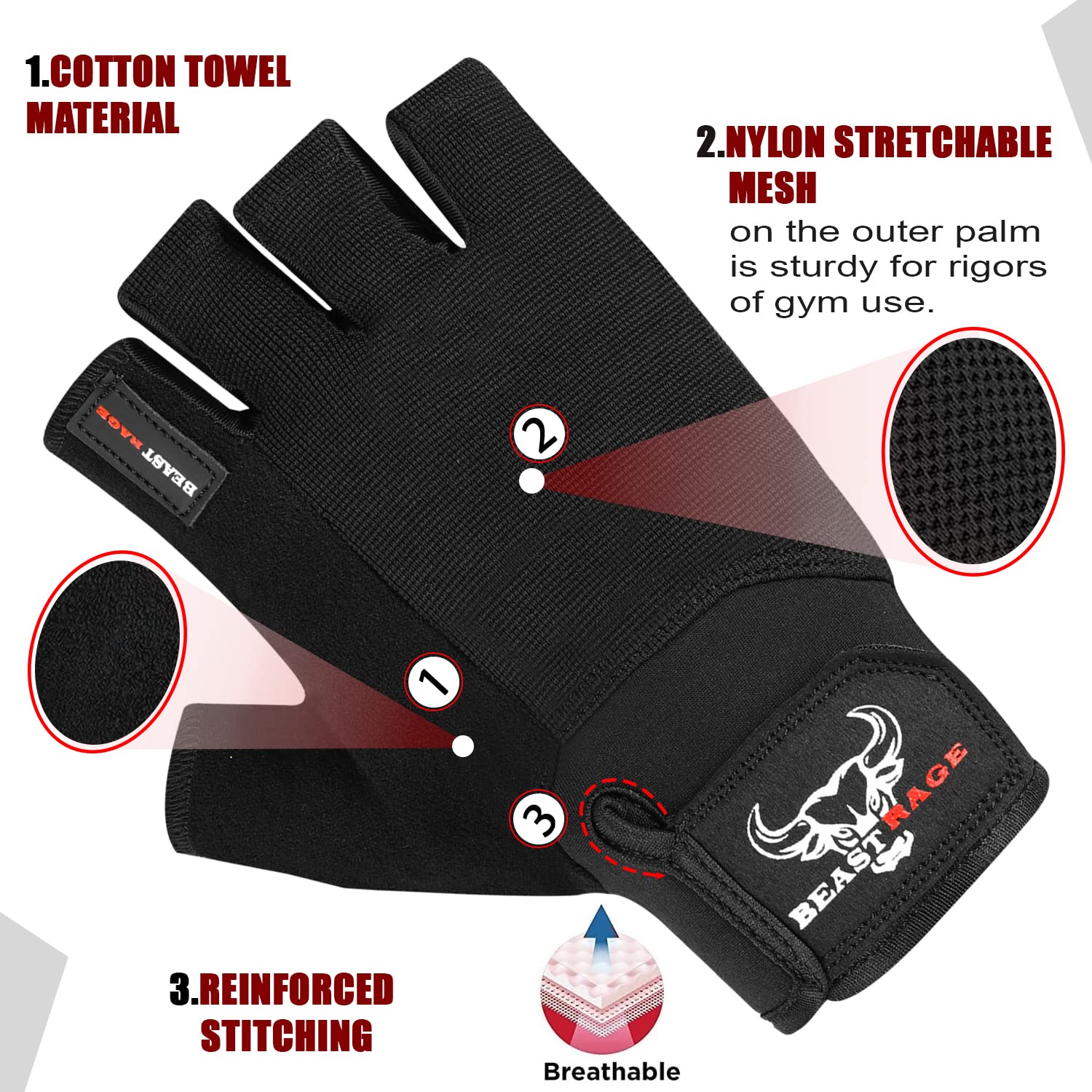 BEAST RAGE Fitness-Handschuhe für Training, rutschfest,gepolsterte Handfläche,Halbfinger-Workout,Gewichtheben-Handschuhe, Radfahren, Crossfit,Krafttraining (Black, L)