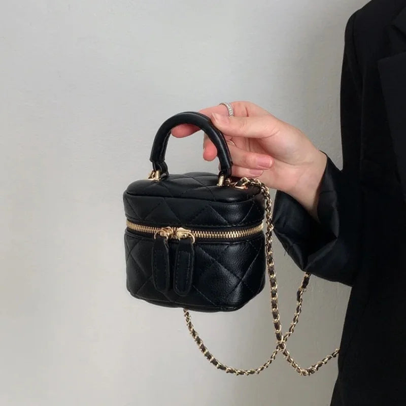 Black White Rhombus Plaid Shoulder Bags Mini Square Makeup Box PU Leather Cross Body Bags Wallet Key Lipstick Holder Storage Bag