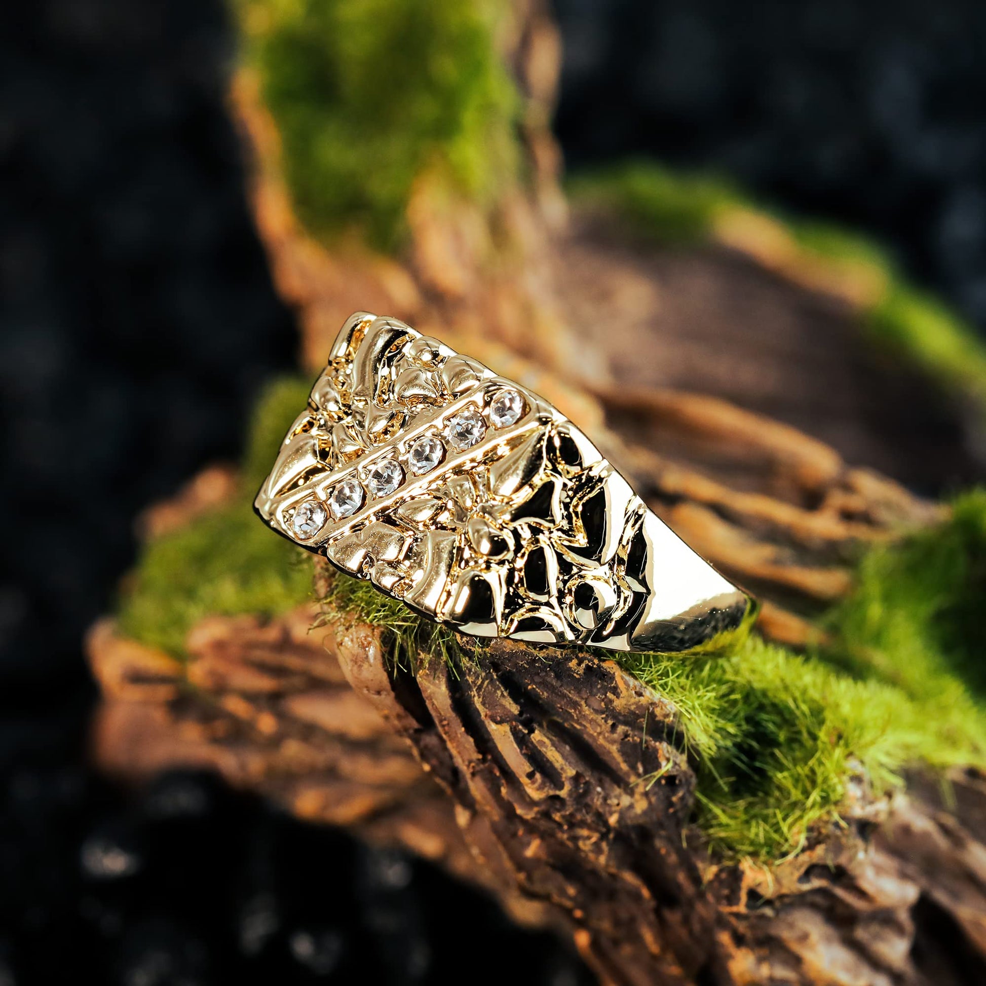 Block Nugget Ring 14k Gold Plated Yellow Pinky Pimp Iced Finger Hip Hop Style For Man or Women Fashion - Size 7-12 (8)