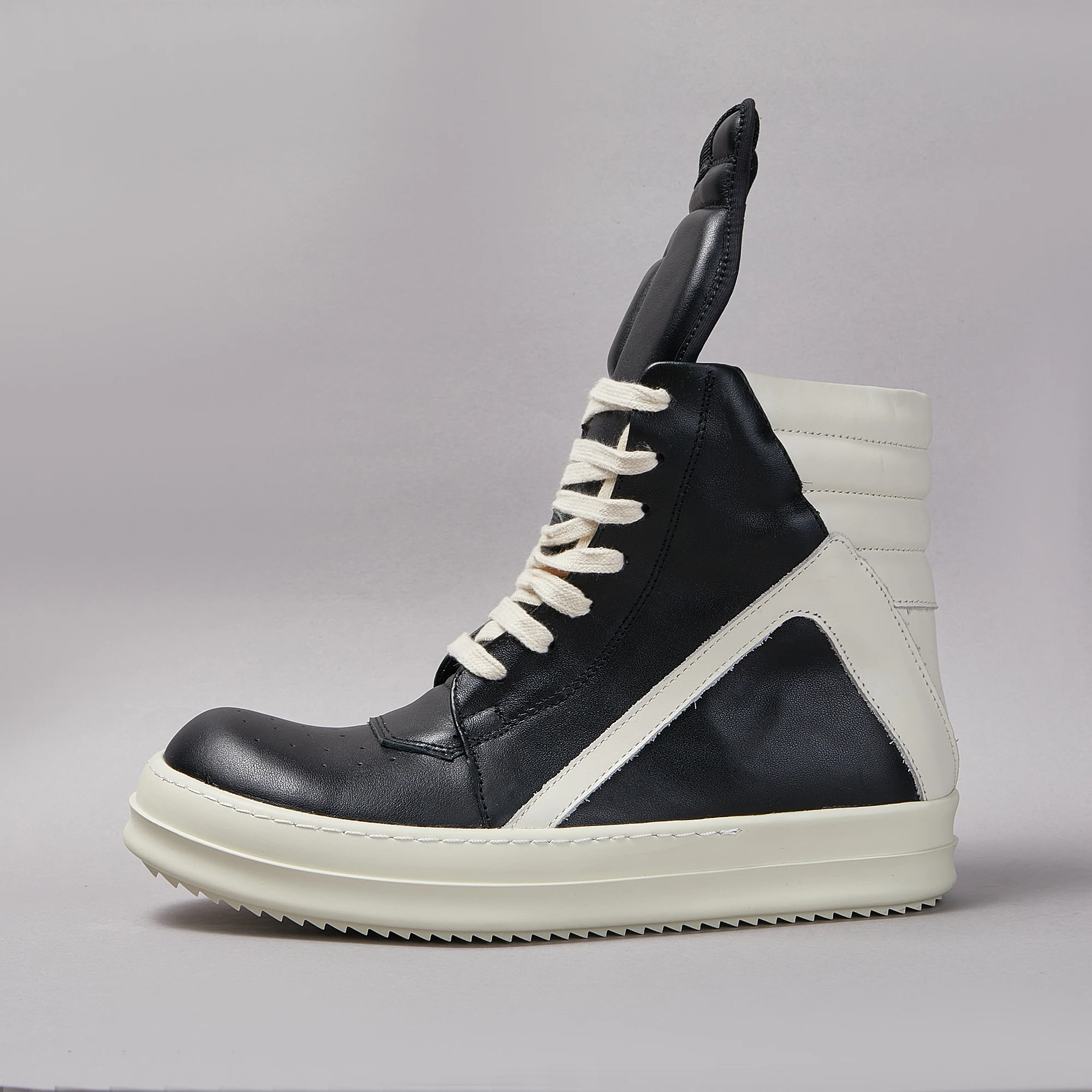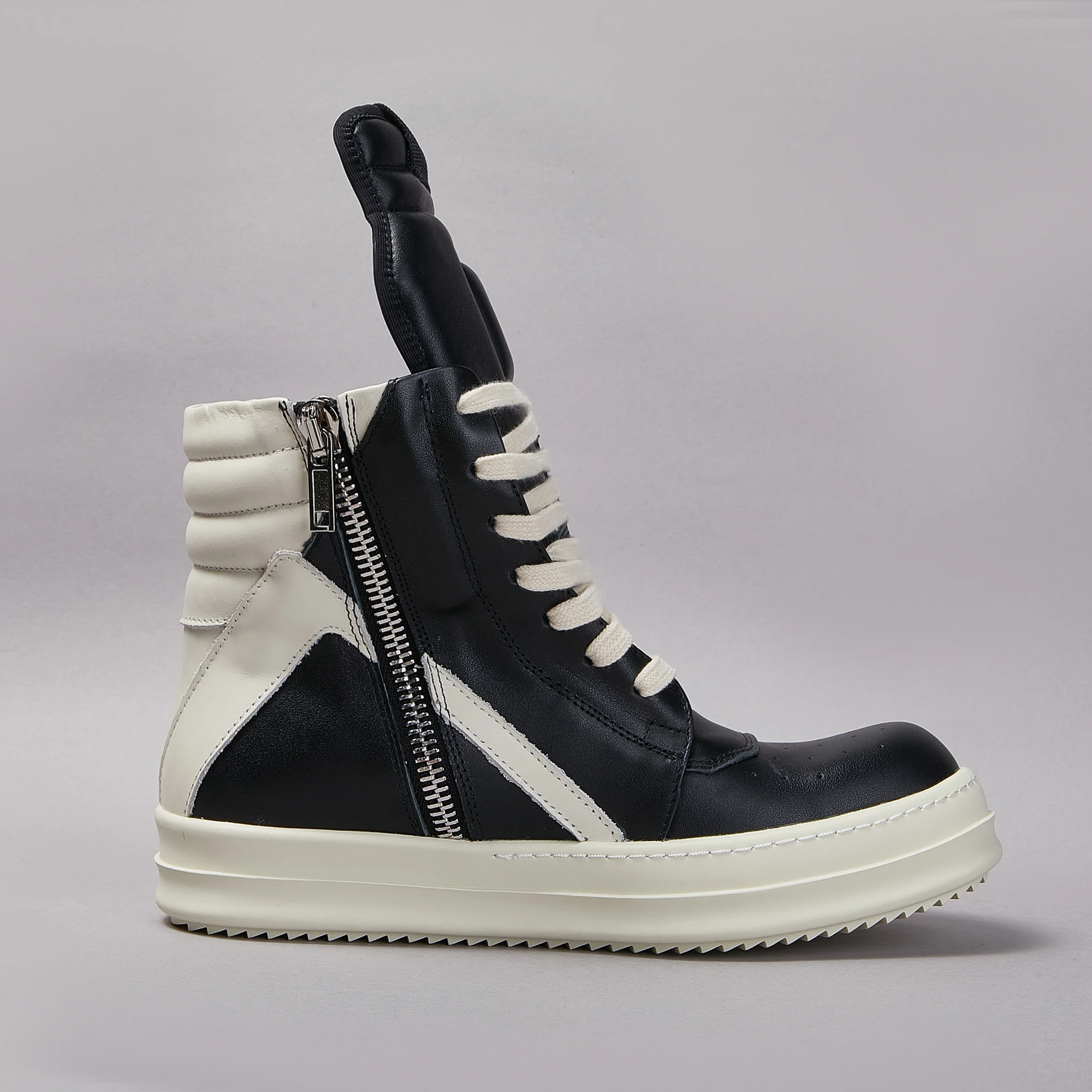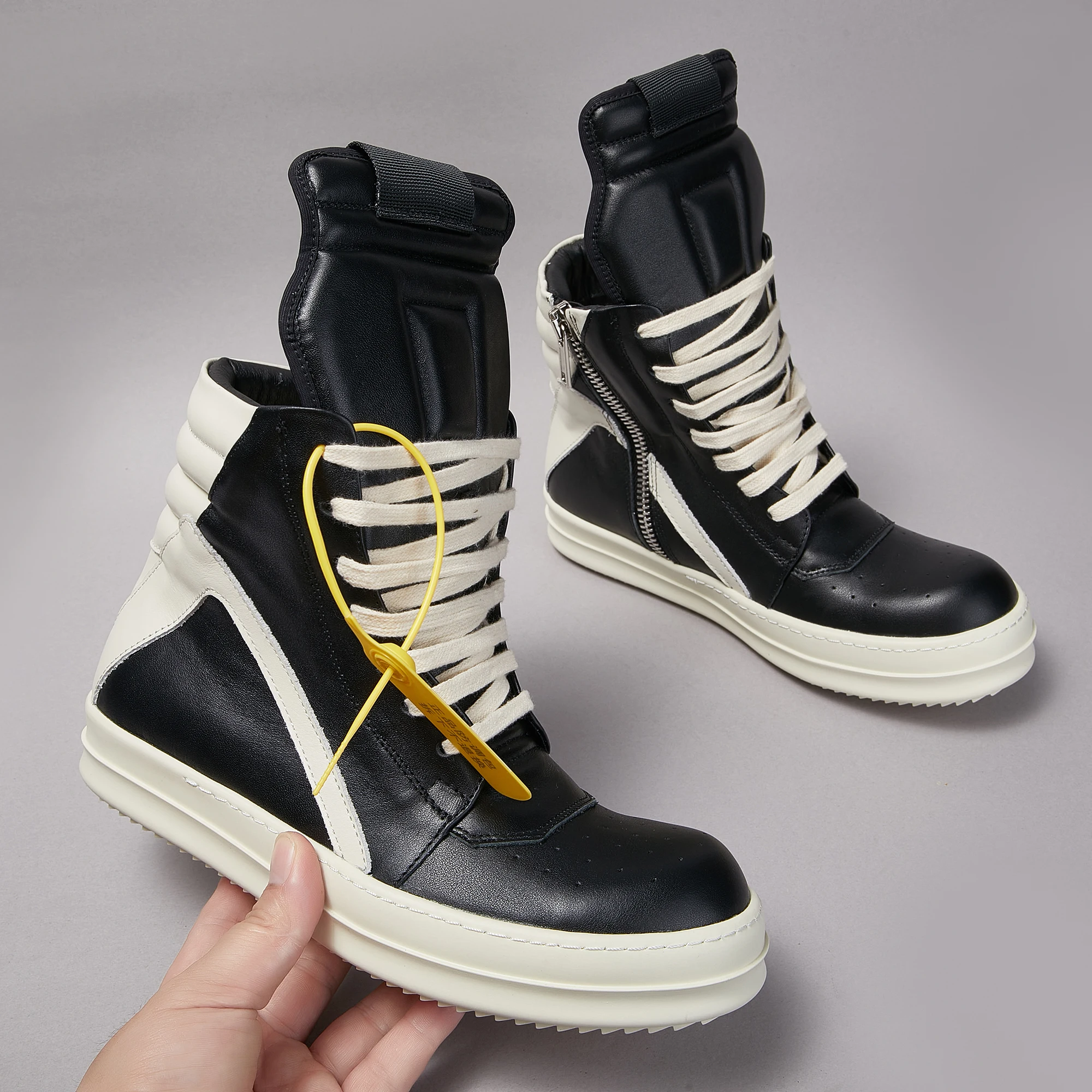 Brand Men Shoes Casual High Top Quality Women Sneaker Black Ankle Boot Genuine Leather Fashion Designer Thick-sole Flat Zip Shoe