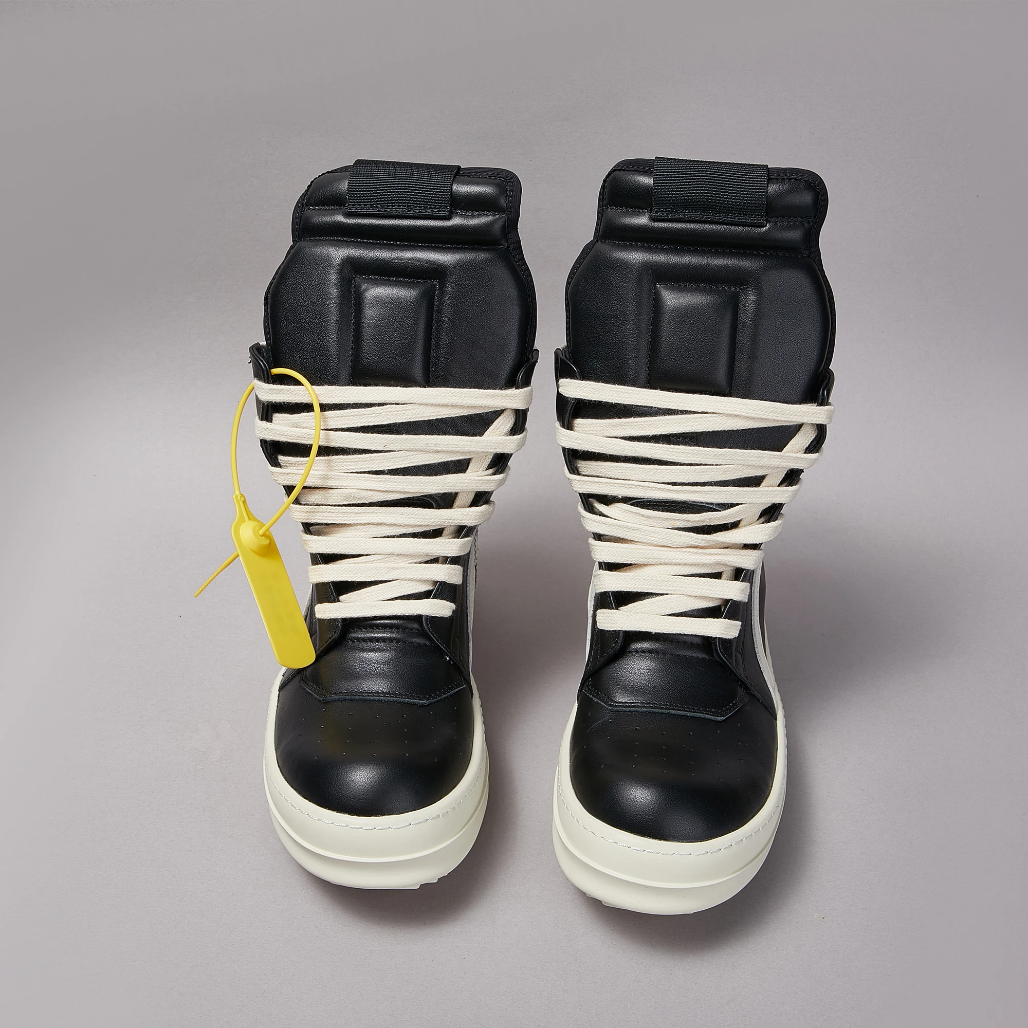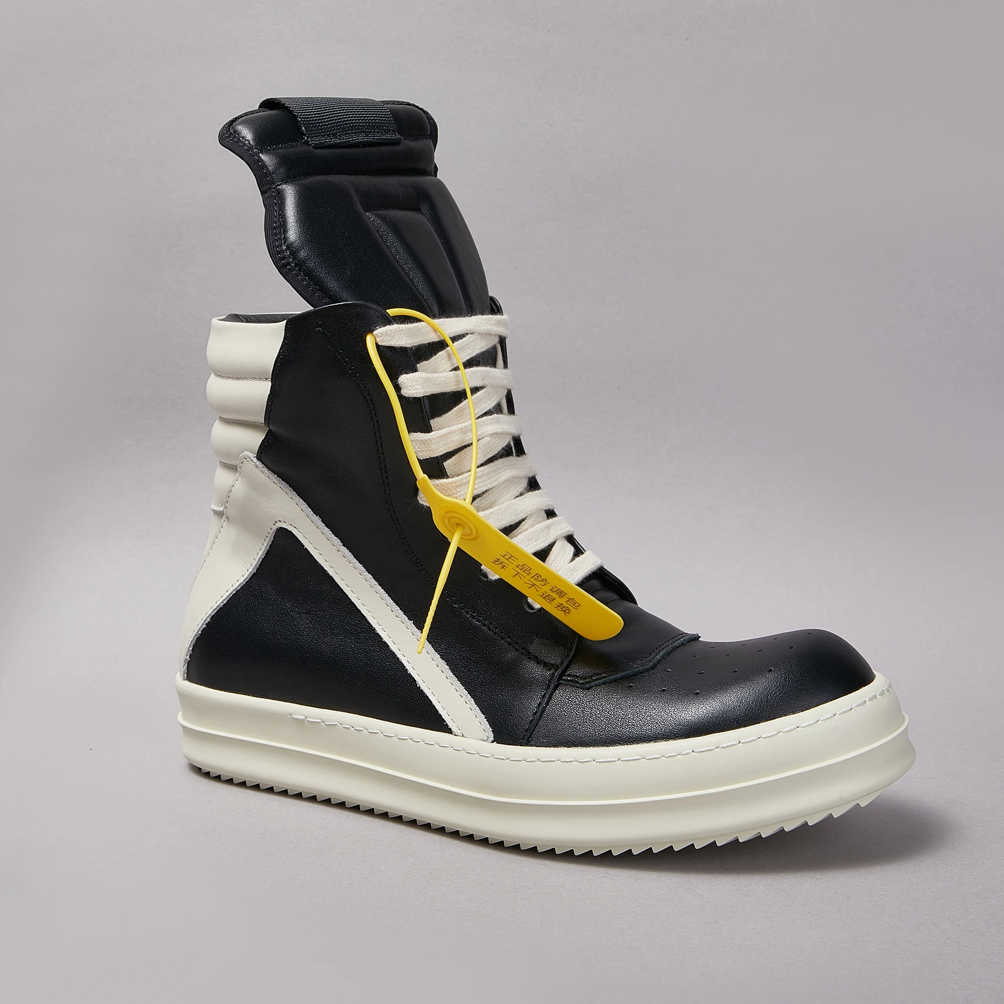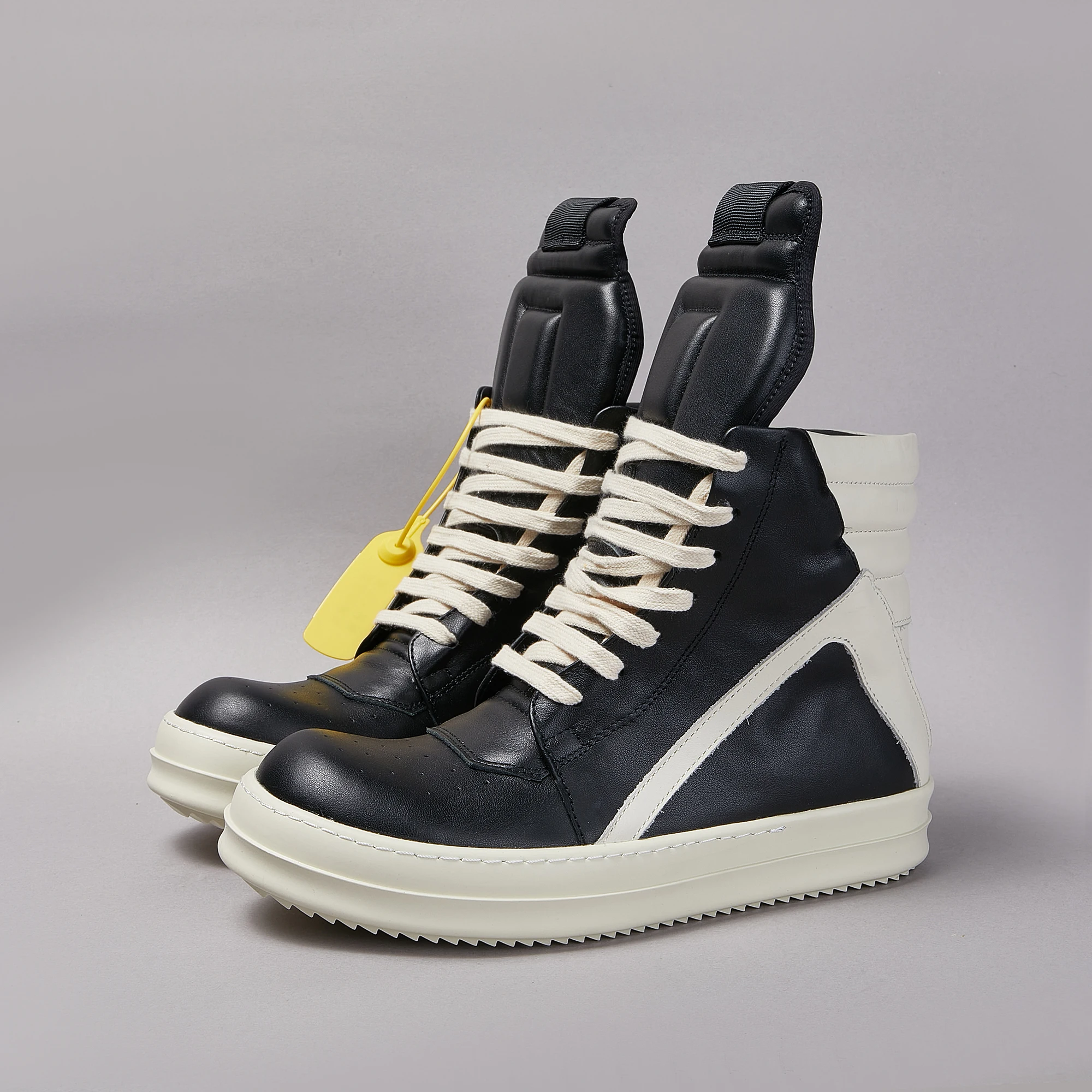Brand Men Shoes Casual High Top Quality Women Sneaker Black Ankle Boot Genuine Leather Fashion Designer Thick-sole Flat Zip Shoe