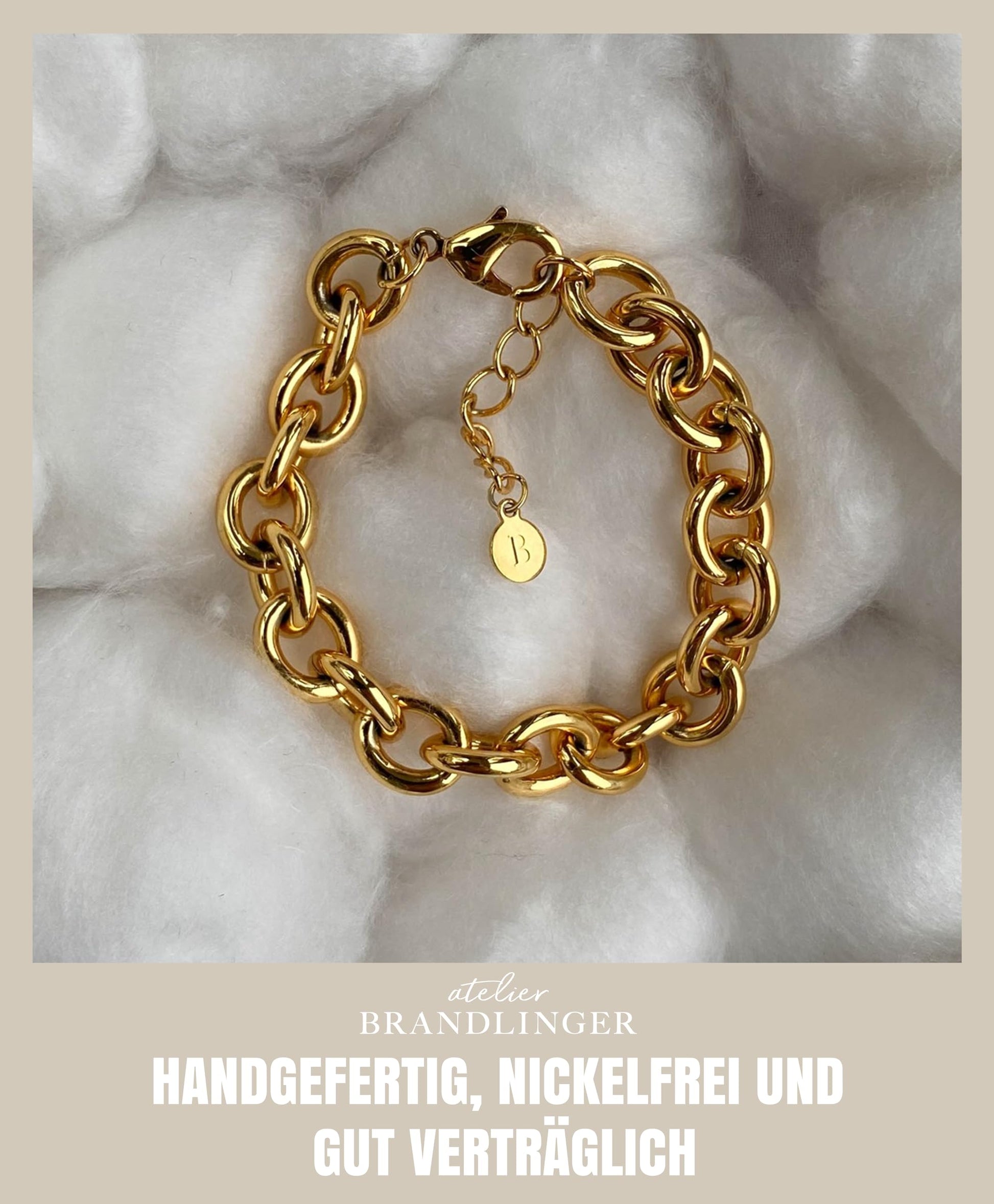 - ❤️ HANDMADE ARMBAND: Armband Damen gold, Armband gold, vergoldet mit 18 Karat Gelbgold auf Messing, Breite der Kettenglieder: 10mm, Länge verstellbar 17-20cm