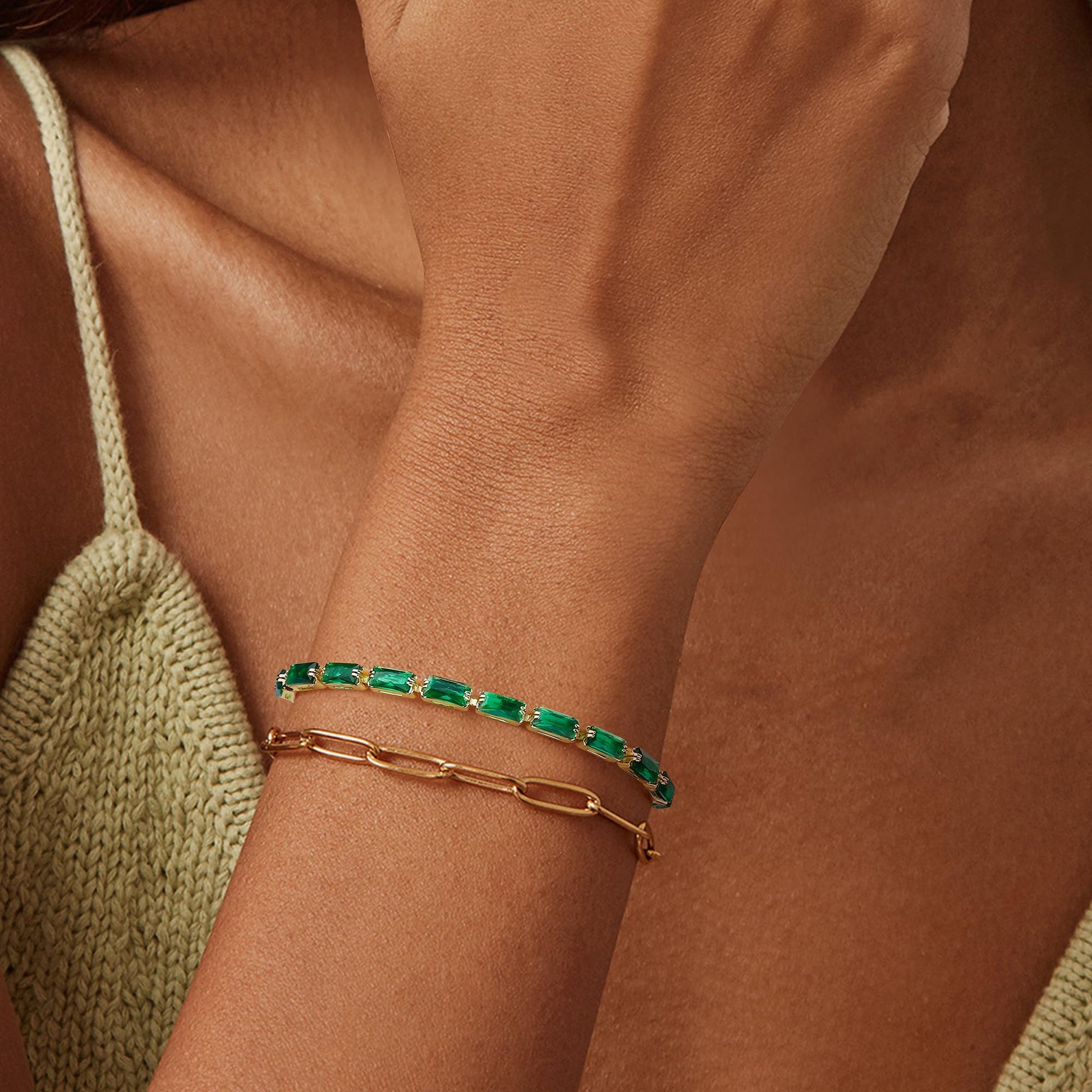 CASSIECA Armband Damen Gold Grün Zirkonia Kristall Tennis Armband für Frauen Geburtstags Muttertag Weihnachten Geschenk für Mama Freund Tochter Gold Schmuck Damen mit Box